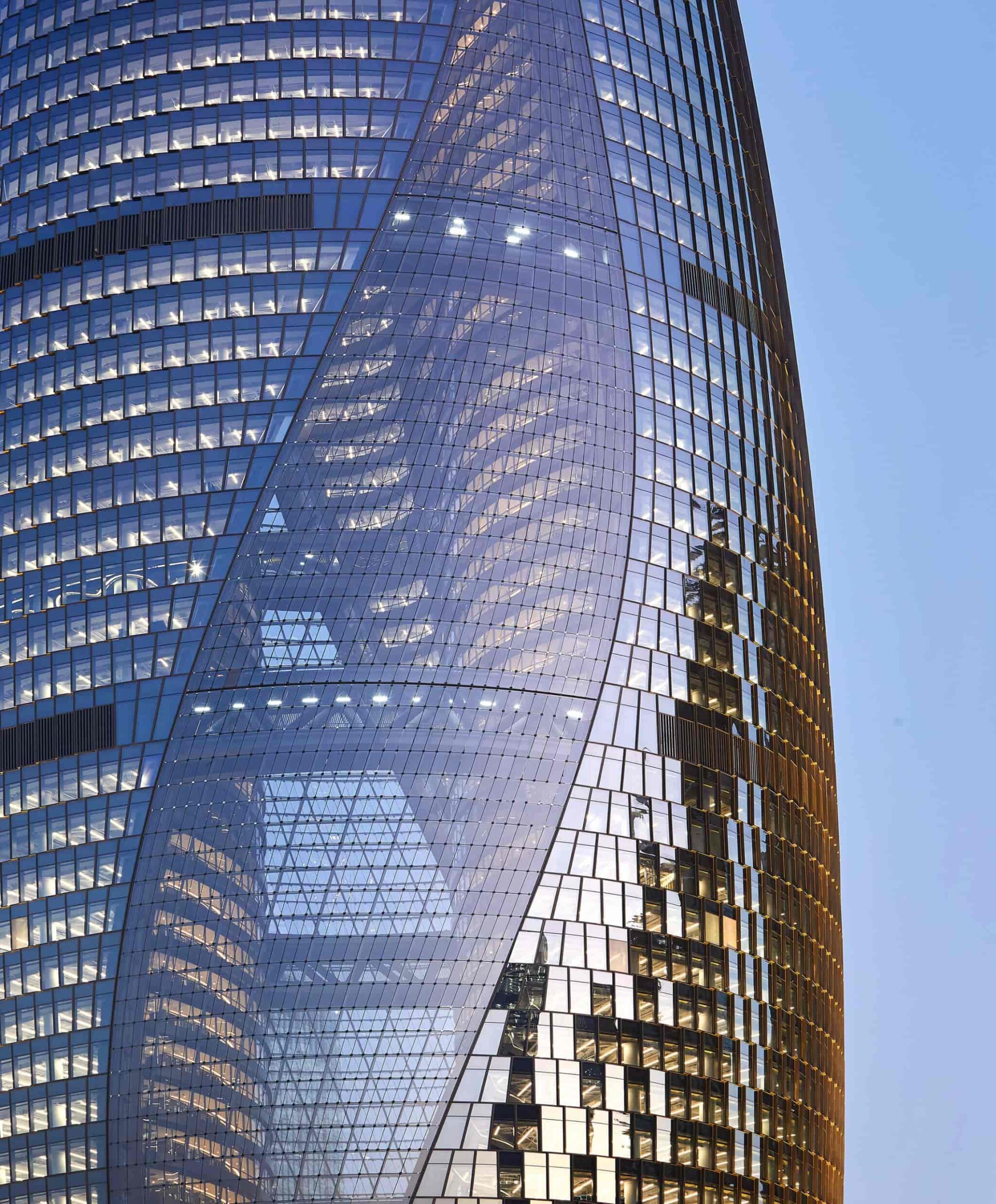 Bina yükseldikçe, Leeza Soho’nun boşluğu, kulenin iki kenarının birlikte hareket ediyormuş gibi görünmesi için 45 derece bükülüyor. Bu aynı zamanda kulenin üst katlarını Batı Pekin’in ana caddelerinden biri olan Lize Yolu’na bakacak şekilde hizalamış oluyor. Atriyumun dinamik şekli, kulenin her iki tarafında iç kısımlara doğal ışık sağlayan ve her kattan şehrin manzarasını sunan dışbükey açıklıklar oluşturuyor.