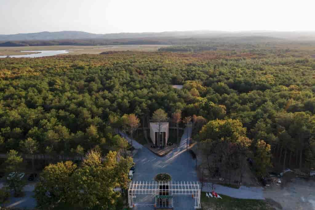 Doğanın tasarıma göre tahrip edilmediği, aksine doğanın olabildiğince korunması düşüncesinin tasarıma yön verdiği Longosphere’de minimum ekolojik ayak izine sahip, doğal, sürdürülebilir ve geri dönüştürülebilir malzemeler tercih edilmiş. Longosphere Glamping doğaya olan saygısını korurken yenilikçi ve iddialı olmayı da başarıyor. Bu etkileyici doğa turizmi tesisi kısa zaman önce açılmasına rağmen yakaladığı doluluk oranlarıyla ziyaretçilerin de beklentisini karşılamış gibi duruyor.