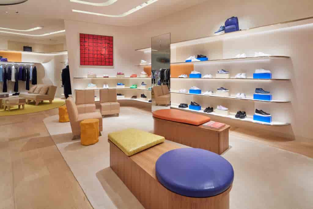 Mağazanın ilk dört katı perakende satışa ayrılmış. Zemin katta yerlerde soluk renkli taş tercih edilmiş ve mekanda üç boyutlu bir etki yaratmak için tavanlar kavisli panellerle kaplanmıştır. Alışveriş alanları boyunca devam eden dokulu duvarlar, hareketli yüzeyler ve ahşapla camın harmanlandığı malzeme paletleri mekanın doğallık algısını güçlendirirken aynı zamanda da mekana hafiflik katmış.