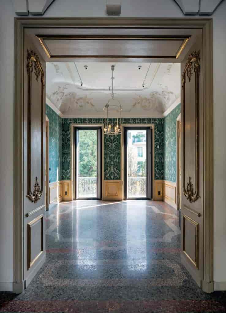 Mimar Filippo Perego tarafından 1960’lı yıllarda tasarlanan dekorasyonlar, kumaş döşemeler, 18. yüzyıl mobilyaları, ahşap lambri ve mermer gibi malzemelerin yer aldığı müzenin iç mimarisi zarif bir şekilde restore edilmiş.