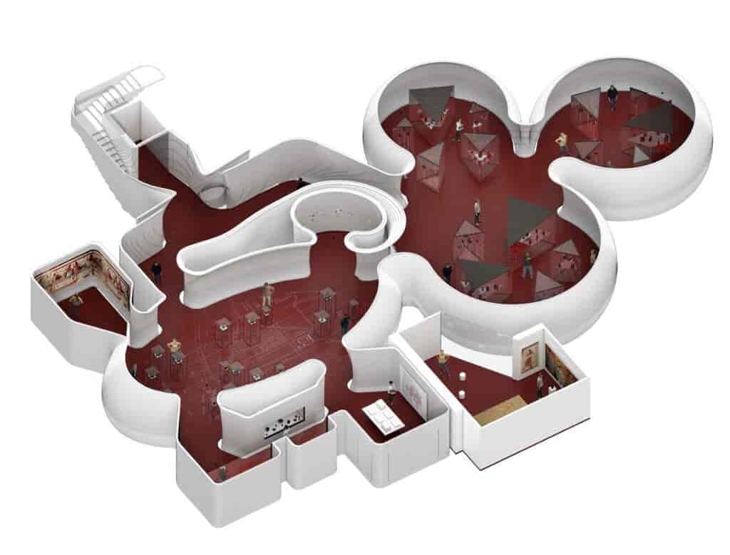 Müzenin bina programında sergi alanları, geçici gösteriler için alanlar, çalışma ve araştırma odaları, çocuklar için oyun alanı, mağaza, kafe, ofisler, konferans salonu, restoran ve sergileri içeren bir bahçe gibi çeşitli fonksiyonlar yer alıyor. Müzedeki sirkülasyonla tanımlanan gezi rotası, metaforik olarak aşağıdan başlayarak yukarı katlara doğru ilerliyor.