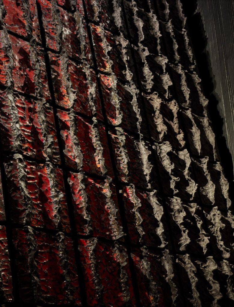 İç mekandaki tasarım detayları, dokunsal ve görsel anlamda farklılık yaratıyor. Çokgen desenli zeminden Peter Zumthor’un Bruder Klaus Field Şapeli’ni anımsatan lav benzeri karo duvarlara kadar her unsur, ateşin arkaik gücünü ve zarafetini vurguluyor. Herzog & de Meuron, bu atmosferi yansıtıcı tavan ve elle işlenmiş yüzeylerle zenginleştirirken, mekâna çağdaş bir sanatsal dokunuş katıyor.