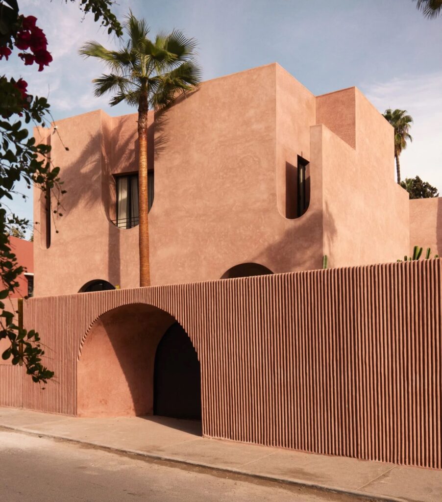 Marakeş’in ünlü Majorelle Bahçeleri’nin yanında konumlanan butik otel Maison Brummel Majorelle, Yeni Zelanda ve Barselona merkezli stüdyo Bergendy Cooke tarafından Faslı mimar Amine Abouraoui’nin katkıları ile Fas mimarisinden ilham alınarak tasarlandı. Otelin dış cephesinde tercih edilen pembe tonlu toprak ve sönmemiş kireç karışımıyla yapının oyulmuş geniş kavisli girintiler ve açıklıklardan oluşan formu, doğa atmosferi ile uyumlu, yekpare bir heykelsi kütle meydana getiriyor. Sitenin zengin tarihine dokusal bir referans sağlayan ve aynı zamanda benzersiz bir çağdaş dile sahip olan Maison Brummel Majorelle, yeşil bitki örtüsü ve suyu binanın bahçesinde kullanarak Majorelle Bahçeleri ile bütünlük sağlarken, kemerli açıklıkları ile birbirinden farklı ölçek, ışık ve gölge oyunları meydana getirerek çeşitli uzamsal deneyimler sunan bir vaha yaratıyor.