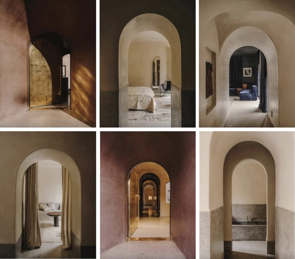 Bergendy Cooke, Ricardo Bofill’in İspanya’daki ikonik mimari tasarımı ‘La Muralla Roja’sını anımsatan çeşitli ölçek ve boyutlarda kemerli açıklıklar ve oyulmuş boşluklarla dinlenme ve lüksü kesiştirerek lirik bir vaha meydana getiriyor.