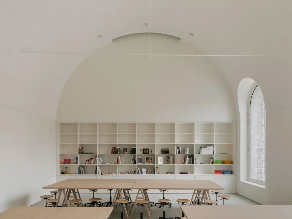 ABBY Kortrijk’in en güçlü yönlerinden biri, yeni ve eski arasında kurduğu açık ama dengeli ilişki. Proje, tarihî yapıyı taklit etmek yerine onunla var olan, onu görünür kılan ve tamamlayan yeni mekânsal katmanlar oluşturuyor. Yapı, geçmişin mekânsal hafızasını korurken, çağdaş sanat üretimi ve kamusal yaşam için esnek ve sürdürülebilir bir zemin sunan bütüncül bir mimari organizasyon olarak öne çıkıyor.