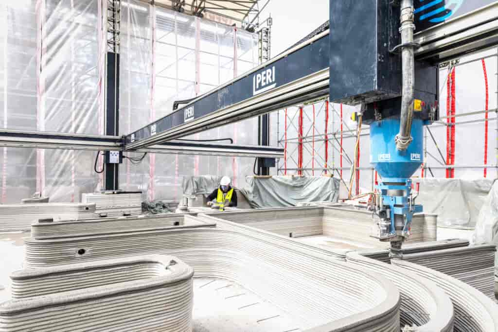 Almanya’nın ilk 3B baskılı konut fonksiyonlu binasının yapım süreci Beckum’da devam ediyor. PERI Gmbh tarafından inşa edilen yapının tasarımı ise MENSE-KORTE ingenieure+architekten’e ait. İki kattan oluşan evlerin önemi ise 3B baskı teknolojisinin artık deneysel çalışmaların yanı sıra konut pazarında da bir yer edinmeye çalıştığının göstergesi olması. Baskı için BOD2 tipi 3B yazıcılar kullanılarak çift katmanlı bir duvarın 1m²’lik bölümü 5 dakika gibi bir sürede tamamlanabiliyor. Bu proje, alanında inşa edilen ilk binalardan olduğu için mümkün olandan daha yavaş bir hızda baskı yapılması tercih edilmiş. Proje süresince olabildiğince deneyim kazanmak ve sonraki projelerde bu deneyimler doğrultusunda maliyetleri düşürmek projenin önemli hedeflerinden biri olmuş.