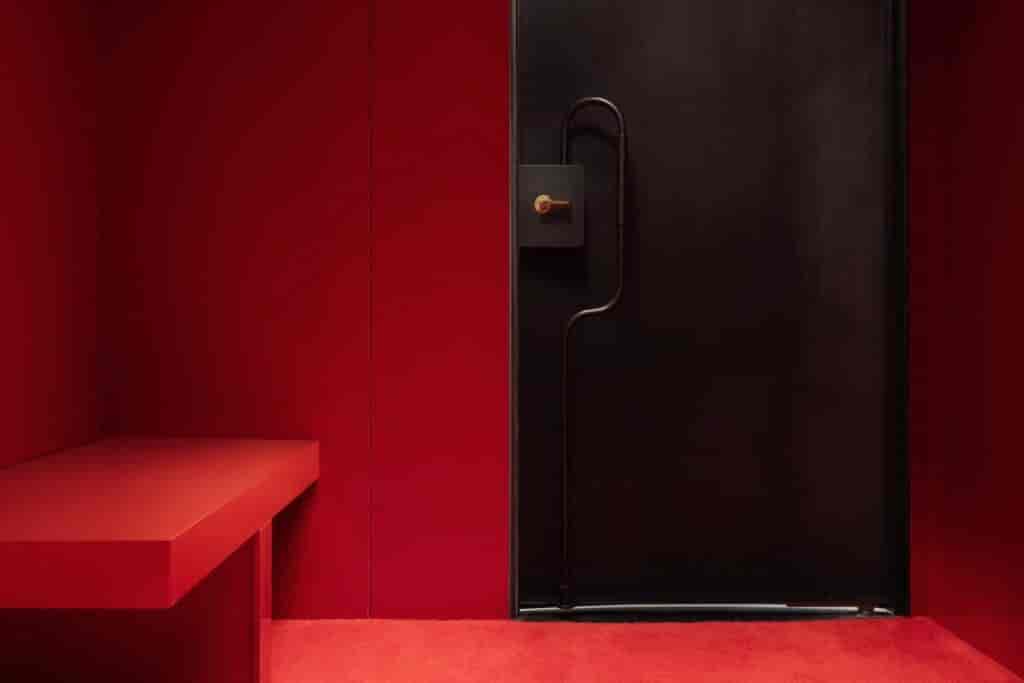 Önceleri bir otoparka ev sahipliği yapan mekan, brütalist ve minimal bir iç tasarıma sahip. Tasarımda öne çıkan başlıca unsur, oldukça sınırlı bir şekilde kullanılan doğal ışığın iç mekandaki güçlü etkisi. Çatı penceresinin altına konumlandırılan ağaç ve lineer bir şekilde tavanda devam eden ışık, beton ve eskitilmiş çelik plakaların hakim olduğu koyu renkli malzeme paleti ile çarpıcı bir birliktelik ortaya koyuyor.