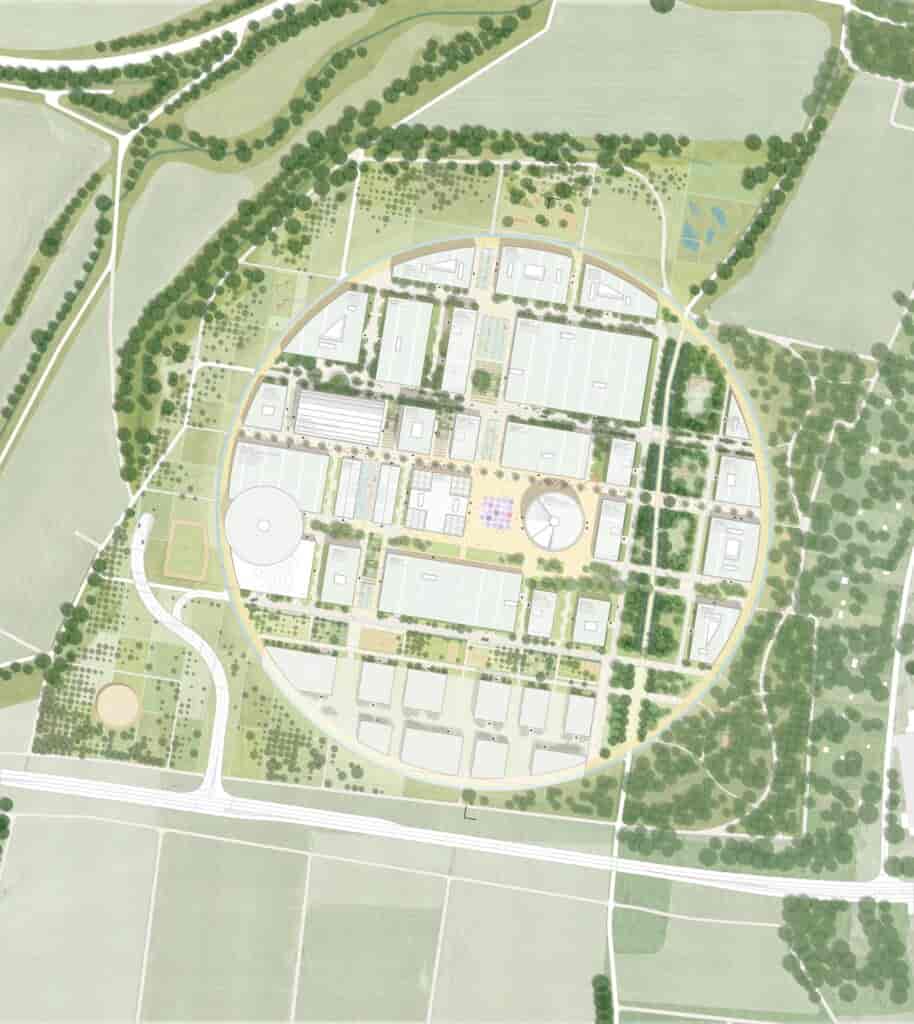 Rotterdam merkezli mimarlık şirketi MVRDV, Almanya’nın Heilbronn kentinde bulunan kampüsün yapay zeka teknolojisine ev sahipliği yapacak olan İnovasyon Parkı Yapay Zeka’ya (IPAI) dönüşümü için düzenlenen tasarım yarışmasını kazandı. Günümüzde fikirlerin ve teknolojinin buluştuğu nokta olarak bilinen inovasyon merkezlerine tasarım şirketi, biyoçeşitlilik ve yenilenebilir enerji kullanımını sağlayan bir konsept ekleyerek teknolojinin yanı sıra sürdürülebilirlik esaslarının da ön planda tutulduğu bir master plan oluşturdu. Prestijli ve dünyaca ünlü teknoloji merkezleriyle rekabet edecek bir kampüs önerisi sunan proje, yerleşim planının dairesel formu ile kampüsü uydu fotoğraflarından da tanımlanabilir hale getirerek görünür olmasını amaçlıyor.
