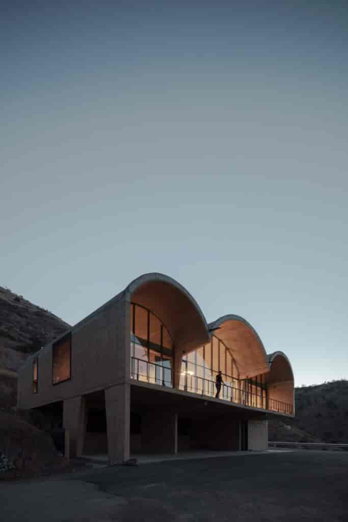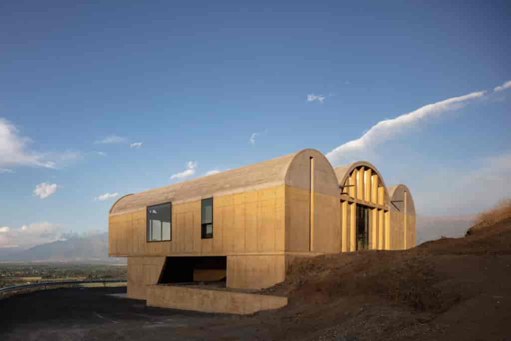 Mimarlık stüdyosu MAPAA, Şili’nin Pirque şehrinde bir aile işletmesi olan şarapçılık işi için beton tonozlarıyla dikkat çeken bir ofis tasarladı. MAPAA, Cristián Larraín ve Matías Madsen tarafından kurulmuş olan Santiago merkezli bir ofis. Eğimli bir arsa üzerinde konumlanan projede, kafes kirişler üzerinde yükseltilmiş üç tonozu oluşturmak için pigmentli beton malzeme tercih edilmiş. And Dağları’nın eteklerindeki eşsiz coğrafyada Vina Haras de Pirque Bağı için tasarlanan yapı formunun ilhamını bölgede bulunan geleneksel şarap mahzenlerinden alıyor.