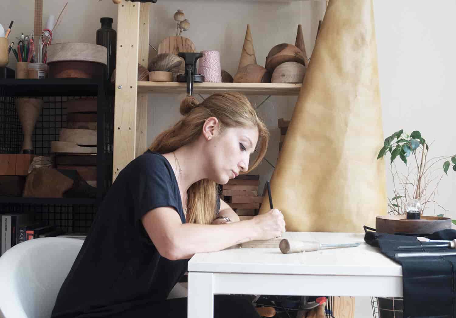 Özge Çağlayan, stüdyosunda standart üretim kalıplarının dışına çıkarak ahşabın yapısını bozmak yerine ahşabın yapısal özelliklerini tasarımla bütünleştirerek makinelerin yapamayacağı işlemleri üstleniyor. Kendini sınırlamadan, elindeki malzemenin sunabileceği bütün olanaklardan yararlanarak el üretimiyle, sabırla, ahşabın desenlerini ortaya çıkarıyor. Bunu yaparken de yüzyıllardır geleneksel ahşap üretiminde kullanılan yöntemleri tercih etmeye özen gösteriyor.