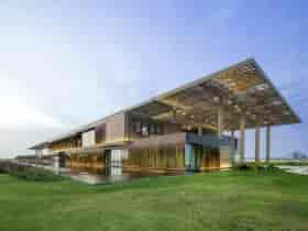 Wagner ve Berlioz gibi bestecilerin operalarının sahnelenişini yansıtan siyah beyaz bir fotoğraf kolajıyla elde edilen tasarım, ışık ve kayalardan oluşan devasa bir mağaranın girişi olarak algılanıyor.