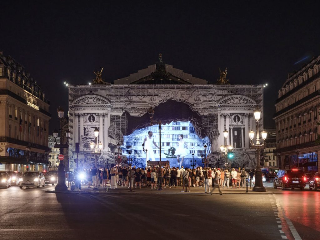 Fransız fotoğrafçı ve sokak sanatçısı JR, Paris’in tarihi opera evi Palais Garnier’in restorasyon sürecinin bir parçası olarak yapının cephesine  “Retour à la caverne” (Mağaraya Dönüş) adlı bir enstalasyon tasarladı. Kentin merkezi noktasında açık hava performatif sanat gösterisi sunan tasarım adeta bir opera gösterisi gibi iki anıtsal perdede gerçekleşti. Öncesinde Louvre Müzesi, Trocadero Esplanade, Farnese Sarayı ve Strozzi Sarayı gibi ikonik mekânları sanat eserine dönüştüren sanatçı, Paris’teki gösterisiyle de büyük ilgi topladı. İlk perdede ön cephe anamorfoza uğrayarak kayalar ve ışıkla dolu bir geçide açılan geniş bir mağaranın girişi haline gelirken ikinci perdede restorasyon sürecinde gridlere bölünen hücrelerin her birinde insan figürleri belirli sekanslarla bütüncül bir sahne anlatısına imza attı.