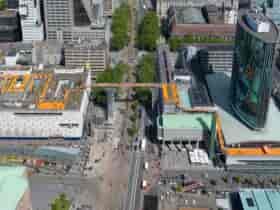 Binayı zeminde yedi farklı büyüklükteki beton pavyon destekliyor; bu pavyonlar restoranlar, mağazalar, kafeler, açık oturma alanları ve yükleme rıhtımı gibi kamusal ve hizmet işlevlerini barındırıyor. Pavyonların en büyüğü yeni Steve Tisch Tiyatrosu’na ev sahipliği yapacak. Zumthor’un tasarımı, bir müze binasının ötesine geçerek 20 dönümlük kampüsüyle toplumsal bir buluşma noktası niteliği kazanıyor.