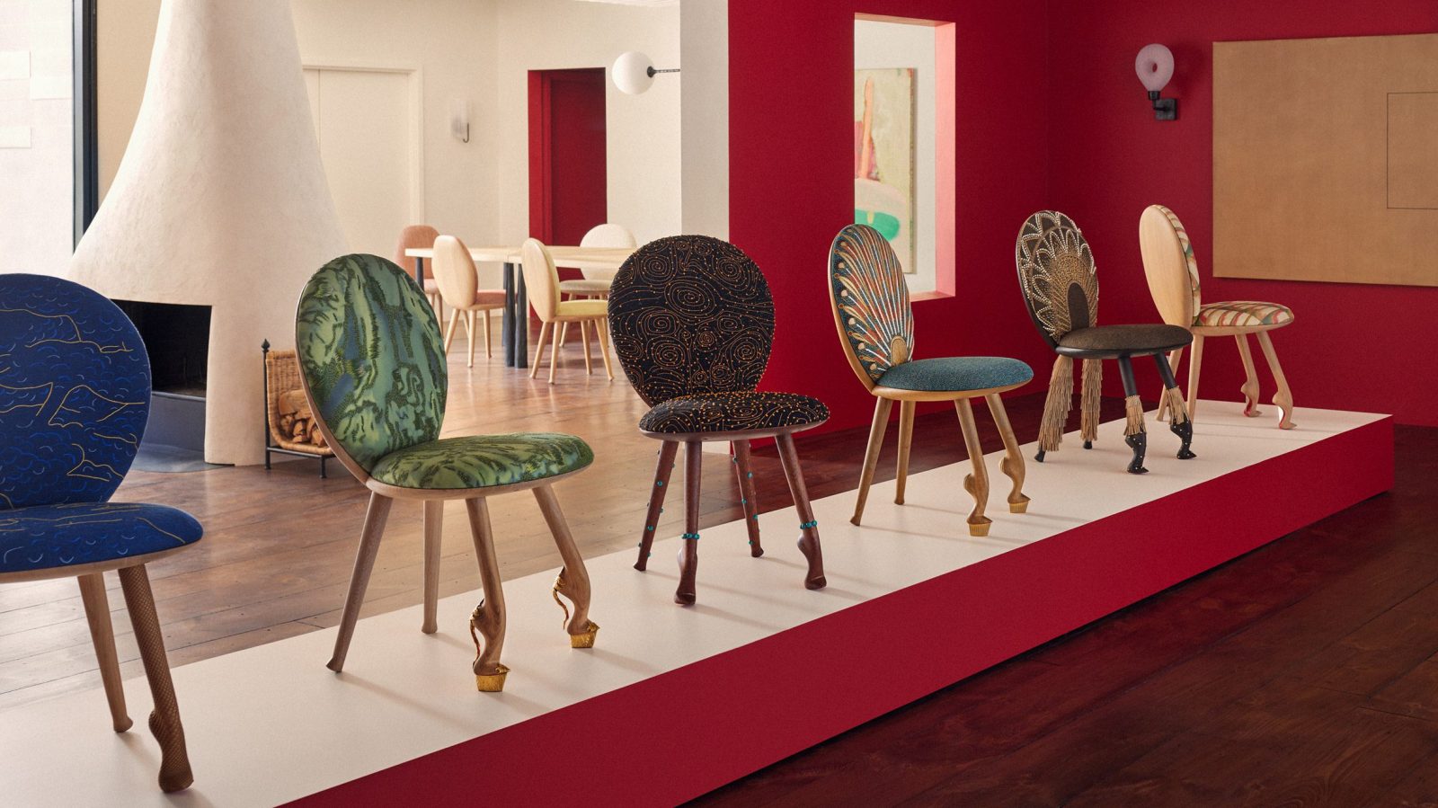 Nefertari sandalyesi, antik Mısır kraliçesi Nefertari’den esinlenerek ayaklarına eklenen altın-bronz topuklarla kraliyet havasını yansıtıyor. Zenobie ise günümüz Suriye’sindeki Palmira’nın üçüncü yüzyıl kraliçesine bir övgü olarak ön bacaklarında turkuaz taşlarla süslenmiş. Metropolissa, deri oturaklı ve metalik detaylara sahip olan, Fritz Lang’in klasik 1927 filmi Metropolis’e bir saygı duruşunda bulunuyor ve bilim kurguda kadın robotun ilk tasvirlerinden birini içeriyor. Syrena, Lehçe’de denizkızı anlamına geliyor ve deniz mavisi kumaş ve balık ağı kaplı bacaklarla tamamlanmış.