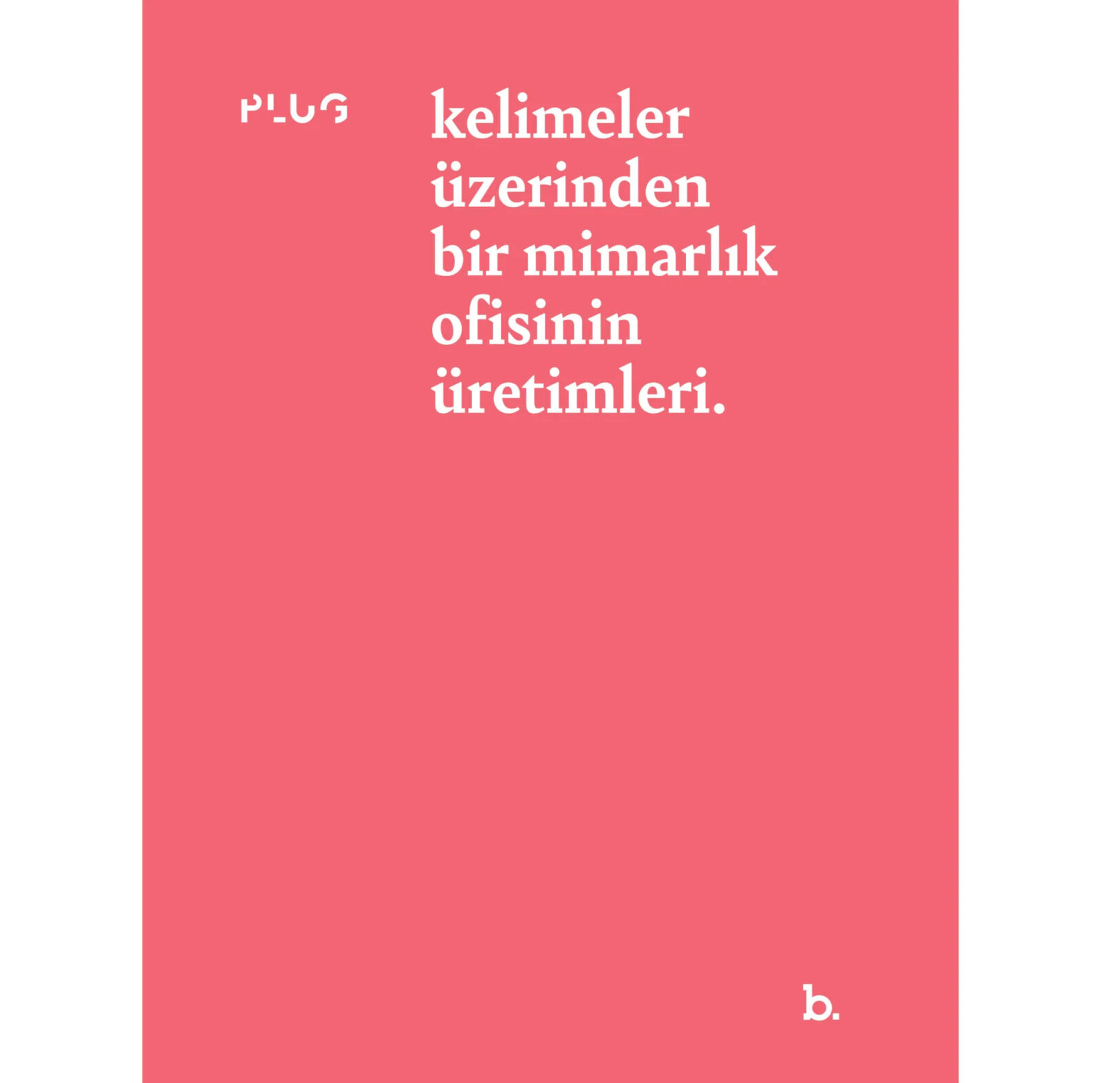 Buşra Al’ın kurucusu olduğu Plug’ın tasarımsal yolculuğunun izini metinler, diyagramlar ve kelimeler üzerinden süren kitap, Sait Ali Köknar, Yeşim Özgen Kösten, Nevzat Sayın ve Ezgi Tuncer’in katkılarına yer veriyor.