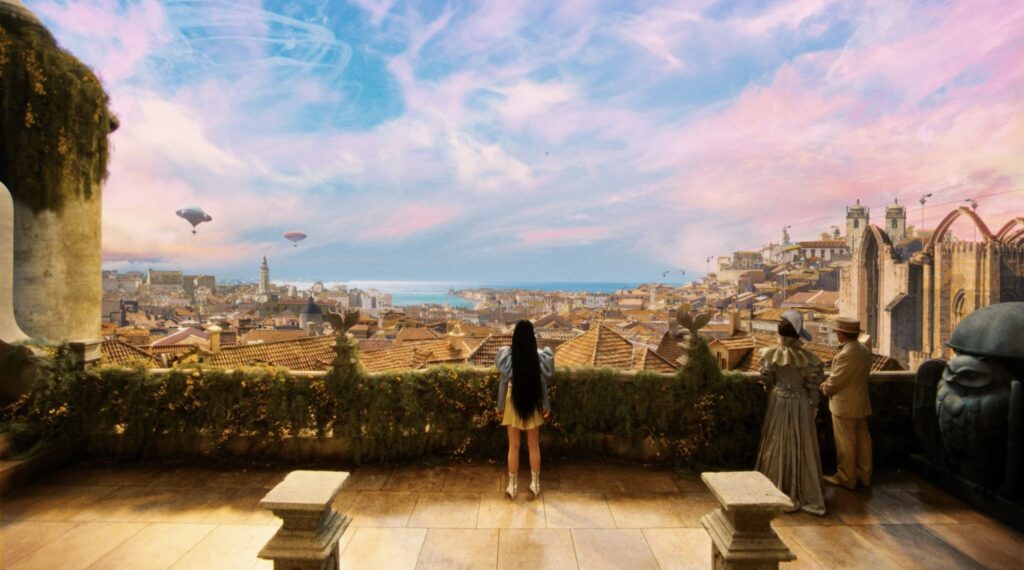 Yapay zekanın gelişmesi, sinema sektörünü de etkileyerek seyircilerin hayal gücünü genişleten sahneler oluşturmaya katkıda bulunuyor. Yönetmenliğini Yorgos Lanthimos’un yaptığı ‘Poor Things’ filmi, senaryo ve oyuncu performanslarının yanı sıra ilginç kostüm tasarımları ve sürreal set tasarımlarıyla da Oscar’a aday gösterilmeye hak kazanmış. Yapım tasarımcıları James Price ve Shona Heath, Poor Things’in set tasarımı için “günümüz teknolojisiyle 1930’ların stüdyo filmi” yaratmayı amaçlamış ve fim akışında Londra, Lizbon ve Paris gibi mimarisiyle dikkat çeken kentlere yer verilmiş. Fakat bu kentler, adeta baştan yaratılmış ütopik, tekdüzelikten uzak, sürreal sahneler olarak karşımıza çıkıyor ve iç mekanlarla birlikte bütüncül bir tasarım dili yakalıyor.