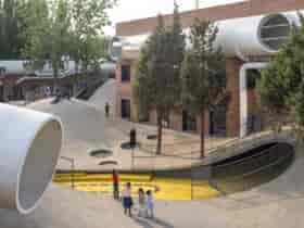 Meydanın köşelerini çevreleyen iki büyük yükseltilmiş bahçe, farklı yüksekliklerde manzaralara bakıyor. Müzenin kafeteryası ve atölyeleri, meydanın tamamına hizmet edecek şekilde müzeden ayrılarak, projenin izin verdiği farklı faaliyetlerin birbirine bağlanmasına ve binanın günlük yaşamının şehrin kentsel dinamikleriyle ilişkilendirilmesine olanak tanıyor.