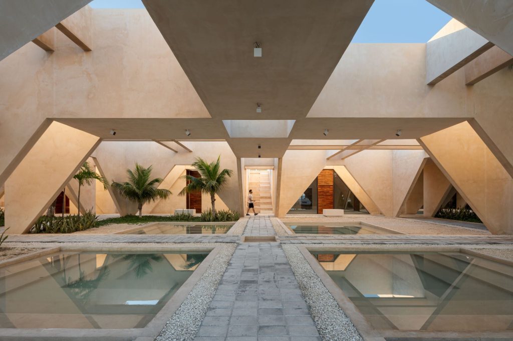 Meksika merkezli mimarlık stüdyosu Estudio MMX, yerel Maya öğrenimini çağdaş mimarlık yaklaşımlarıyla bilinçli bir şekilde sentezleyen Progreso Jeoloji Müzesi’ni tasarladı. Meksika’nın Yucatan Yarımadası’ndaki liman kenti Progreso’da konumlanan müze, Maya kökenli doğal kaplama olan chukum ile kaplanmış çok sayıda yapıdan oluşuyor. Farklı yükseklikte parçalı hacimlerden meydana gelen yapı kompleksi, grid sistemini takip ediyor. Kütle şeklindeki yapılarda diyagonal açıklıklar yaratılması müzeye dinamiklik katıyor ve iç ve dış mekanlar arası akışkan geçiş sağlıyor.