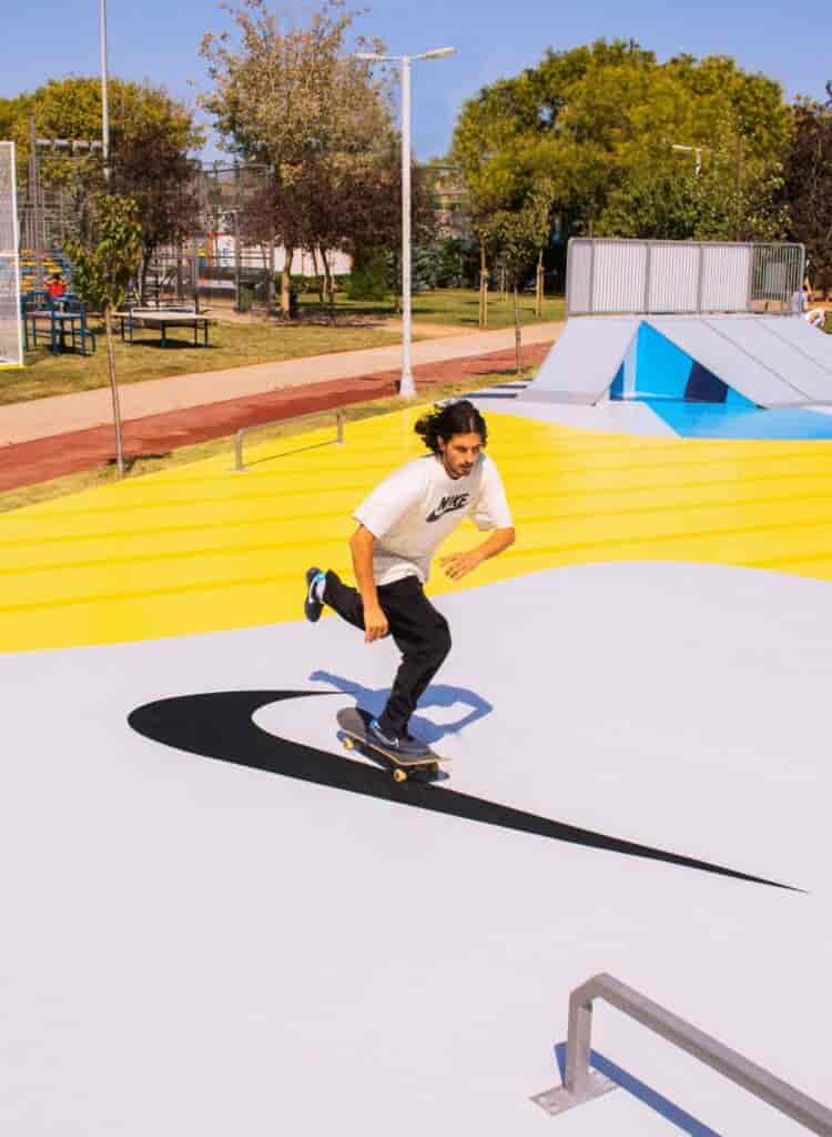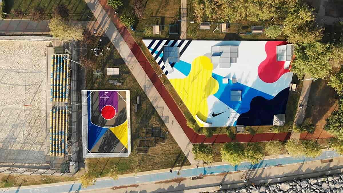 Alandaki her bir detay tasarlanırken, kolektif hareket etme duygusu uyandıracak renkler ve desenler üzerinden yorumlandı. Alanda kullanılan 4 ana renk üretme, onarma, paylaşma ve hareketi temsil ediyor. Parkın yenilenmesinde ise üretim ve tüketim sonrası geri dönüştürülmüş atıklardan üretilen Nike Grind malzemeler kullanıldı.
