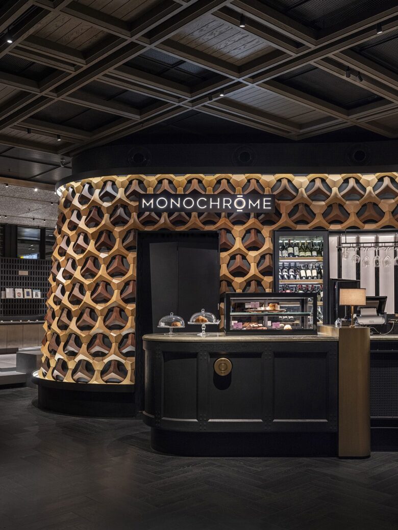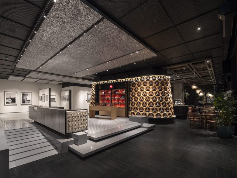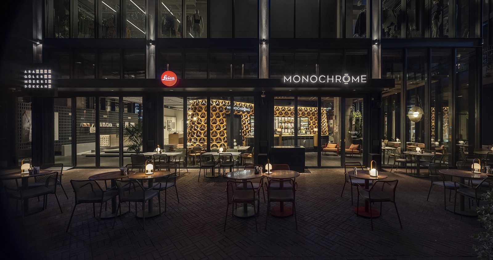 Şehrin kültür ve sanat mekanlarının yeni popüler adresi Galataport’ta yer alan Doğuş Grubu bünyesindeki Ara Güler Müzesi, Monochrome ve Leica markalarının ortak olarak kullanacağı mekanın deneyim tasarımı ve iç mimarisi Wangan imzası taşıyor. AGLM projesi, birbirinden farklı fonksiyonların bir arada nasıl var olabileceğinin güzel bir örneğini sunuyor. 435 metrekarelik alanda müze, kafe ve fotoğraf makinesi mağazasının birlikte yer aldığı bir kurgu üzerine yoğunlaşan Wangan, farklı işlevlerin ayrıştırıldığı bir düzen yerine deneyim hikayesini markaların ortak noktaları üzerinden yaratan bir mekan tasarlıyor. Böylece ziyaretçilere farklı unsurlardan ilham alan, kapsayıcı ve alışılagelmemiş bir mekansal deneyim vadediliyor. Mekânın ortasına yerleştirilen ana kütlenin üç boyutlu deseni, fotoğrafçılığın ve fotoğraf makinesinin temel öğelerinden olan diyafram açıklığının (apertür) geleneksel formundan esinlenilerek tasarlanıyor. Leica’nın vitrin ünitelerini ve Ara Güler Müzesi’ne ait sergi panolarını barındıran bu kütle aynı zamanda Monochrome’un mutfak alanına da ev sahipliği yapıyor. Projenin öne çıkan ögelerinden olan bu merkezi kütle üzerindeki ışık oyunları hem içeriden hem de dış mekandan algılanan ve dikkat çeken bir görsel etki yaratıyor. Yapısal olarak iç içe olsalar da mekânlar arasındaki farkı, iddialı ve kontrast bir duruş ile ifade etmek isteyen stüdyo, Ara Güler Müzesi’ne ait alanlarda, siyah-beyaz tonları doğal taş, paslanmaz çelik ve alümniyum köpük gibi sert malzemeleri keskin hatlarla kullanırken Monochrome’a ait alanlarda,  aydınlatma kararlarından, malzeme seçimlerine kadar olan farklılıklarla çok daha sıcak bir atmosferle son kullanıcının karşısına çıkıyor.