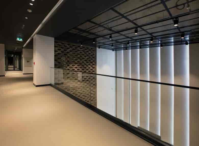 Cephede endüstriyel bir ürün olan tuğlanın karakteristik yapısı baskındır. Köprü ve teraslarda genleştirilmiş metal yüzeyler tuğlaya eşlik eder. İç mekanda ise tavanlar ve kolonlar brüt beton bırakılmıştır. Döşemeler ve merdivenler, ortak hollerde, epoxi; atölyelerde ise yüzeyi sertleştirilmiş yalın betondur. Fabrikanın ilk karşılama alanı olan yüksek lobide ise cephedeki tuğla iç mekanda bir motif öğe olarak kullanılmıştır.