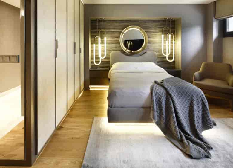 Yaklaşık 300 m2 olan dairenin Üst giriş katında Salon, ebeveyn yatak odası ( banyo-soyunma od dahil) bölümü, sitenin havuzuna açılan bir teras yer alan dairenin alt katı garajdan ayrı bir girişe de sahip. İki çocuğun odaları, Konuk odası, bakıcı odası , mutfak ve servis bölümlerinin de yer aldığı bu katın odalarından gizli bir İngiliz Bahçesi'ne çıkabiliyorsunuz...