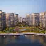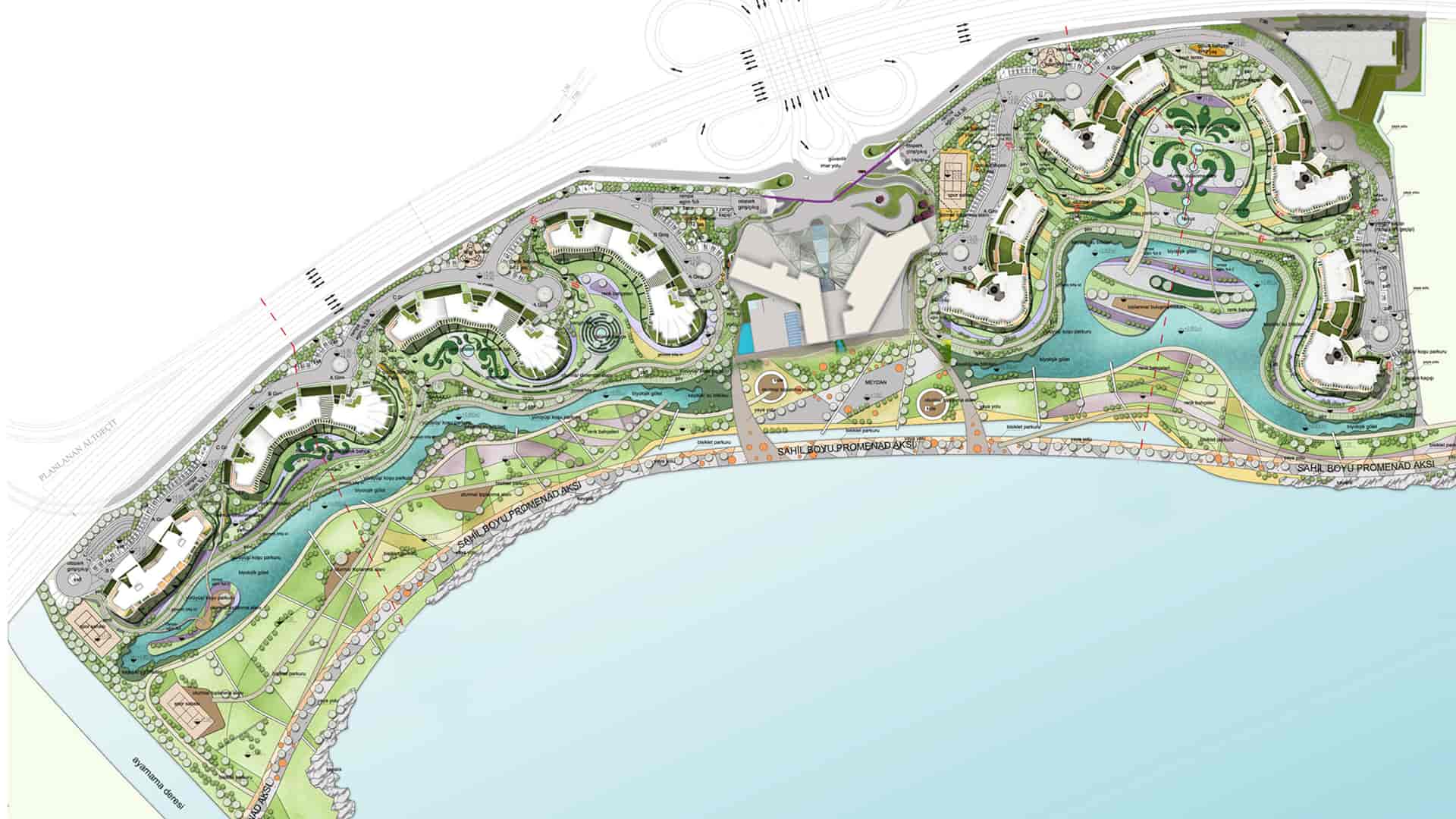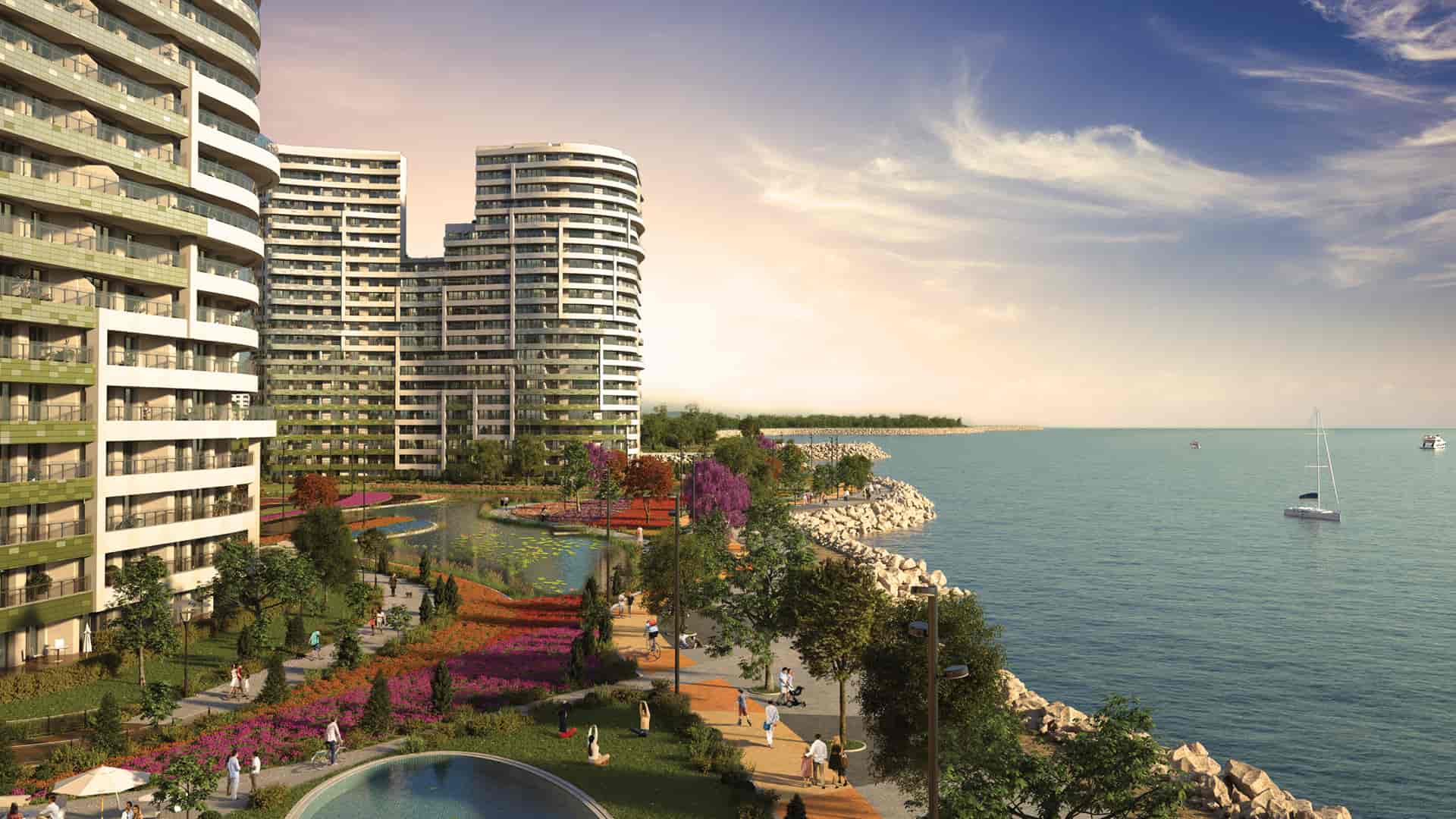 Görkemli ama sade, lüks ama abartısız bir ele alışla projelendirilen konut iç mimarisine, tüm konut ünitelerinin sahip olduğu yüzde 100 oranındaki deniz manzarası eşlik eder. Konutlardaki iç ve dış mekan yaşantısının iç içe geçip tek bir atmosferde kurgulanmasını sağlayan kayar doğramalar sayesinde geniş teraslara ve kat bahçelerine açılan yaşam alanları genleşip eşsiz bir İstanbul manzarasıyla bütünleşerek özellikli bir yaşam kalitesini kullanıcılarına sunmaktadır. Binaların konumlandırılmasında sert İstanbul rüzgarlarına kapalı bir şekilde yer seçilmesine özen gösterilirken, bina formlarının eğrisel olması sebebiyle denizden gelen temiz havanın Ataköy içlerine kadar geçebilmesine olanak verilerek çevreye uyumluluk gözetilmiştir. Yine aynı şekilde binaların alt katlardaki toprak hakimi rengi, üst katlara gittikçe açık gri ve mavi tonlara dönüşerek gökyüzüne doğru uzanır. Bu sayede sükunetli bir sadelikle kente katılan bina blokları İstanbul’a yeni bir değer kazandırmaktadır. Bina cepheleri çağdaş kent kültürünü yakalamak amacıyla, Türk kültür ve geleneğinin modern bir yorumu olarak ele alınmıştır. Projenin en önemli girdisi ‘su’yun ve yeşil dokunun mekansal olarak gündelik yaşama dahil edilmesidir. Su, arazinin içlerine rekreasyon ve sosyal donatı için kullanılmak amacıyla alınmış ve bu sayede kent zemini sürekliliğinde bir ilişki kurgulanmıştır. Arazi kullanımı yüksek binaların doğru konumlandırılmasıyla kullanıcıların yeşille, doğayla yakın ilişkide olabileceği alt ve üst yapıya sahiptir. Taşıt trafiğinin arazinin arkasında sonlandırılmasıyla kullanıcıların tüm alanda emniyetli bir şekilde, yaya olarak hareketi sağlanmış ve peyzaj alanlarıyla buluşması öngörülmüştür. Her yaş grubuna hitap eden çocuk oyun alanlarıyla zenginleşen rekreasyon alanları, farklı konseptteki bahçeler, peyzajdaki sert zeminlerin birer buluşma ve karşılaşma ortamına olanak vermesiyle sosyalleşmeyi üst düzeyde tutar. görmek mümkündür.
