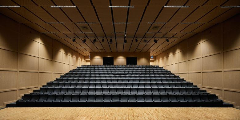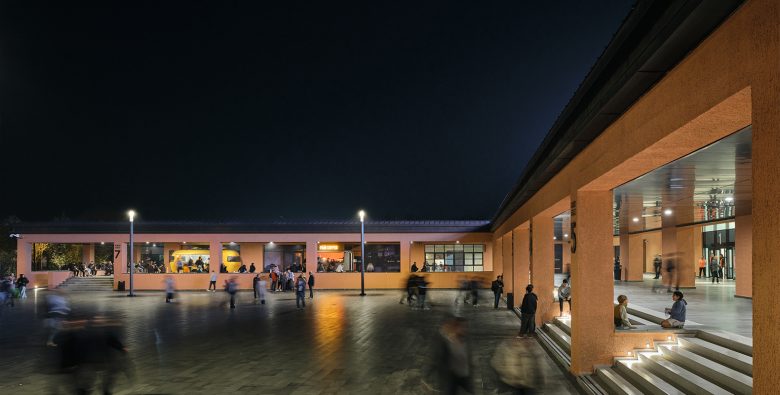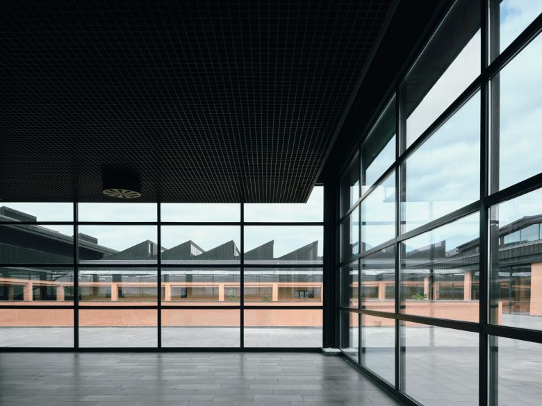 Surların karşısında mütevazı şekilde yükselen çatılar dizisi teknik ekipmanlar için gerekli hacimleri sağlıyor. İç ve dış cepheler dengeli bir ifade kazanırken, korunaklı iç sokak ve ikinci bir zemin katmanı olan portiko üst kotu kademelenen kütleler arasında bir geçiş yaratıyor; hem biçimsel hem de işlevsel olarak. Cephe ve plandaki bu ifade, bugün spor yapısı denince akla ilk gelen; şehirlerin periferisinde, çevresi ile ilişkilenmesi zayıf, içe dönük, bulunduğu yere kendi kurallarını dikte eden mega-ikonik yapılarda görülen kurgunun aksine bağlam ve program etrafında gelişen anonim bir mimari yaklaşımın sonucu.