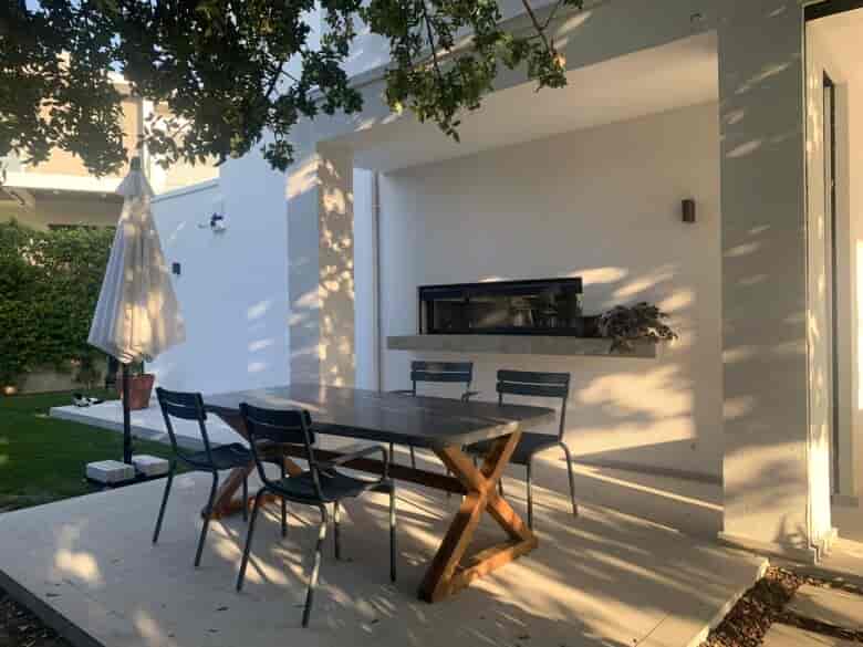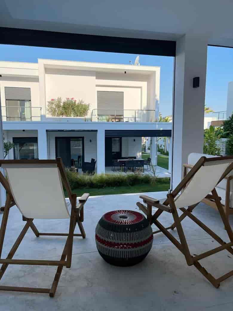 Bunu sağlayabilmek için de Akdeniz mimarisinde de çok görülen kolonlar üzerinde bir pergola cephe boyunca uzanarak bütün alt katı bütünleyecek, dışarda bir yaşam alanı oluşturacak ve evin yatay olarak okunmasını sağlayarak evleri alt ve üst kat olarak basit bir mimari dile dönüştürecekti. Pergolayı hafifletmek ve doğayla bütünleşmek adına belirli bir kısımda çatı boşaltılarak zeytin ağaçlarının cepheye katılması, kapalı bölümde ise çatı bahçesi yapılarak yine binanın bitkiler büyüdükçe yeşillikle bütünleşmesi be böylecd birbirlerine bakan kütlelerin zamanla bitki ile kaplanarak betonarme görüntüsünün hafifletilmesi amaçlanmıştır.