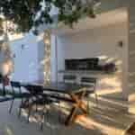 Planlama ihtiyaç listesinden öte evlerin arazi içindeki konumu ve güneşin seyri göz önünde tutularak günün her saatinde mekanların nasıl yaşanacağı düşünülerek tasarlanmıştır. (havuz, pergola, yemek alanı)