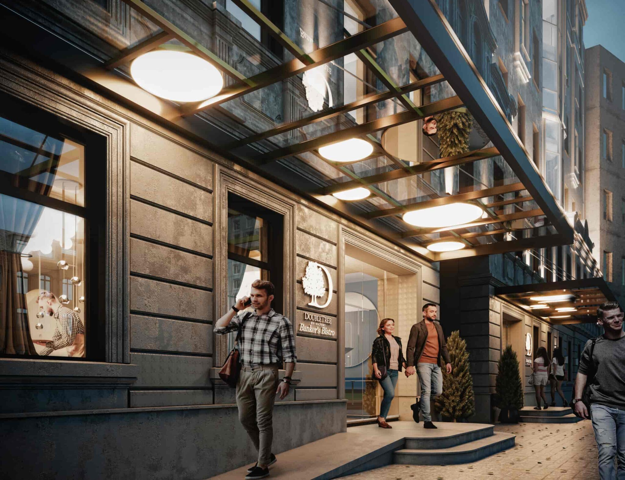 So, to develop our design concept we took inspiration in three main sources: Arbat Street & Central Moscow’s elegant design, the memory of the Bank and Russian Constructivism. With these references we designed this 100 key 4 star hotel, which integrates a Bistro restaurant and a Lobby bar which aims to contribute to the city’s social landscape.