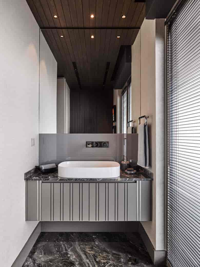 Tasarımda açık griden antrasit ve koyu kahve tonlarına uzanan bir renk skalası baz alınmış, mekanlarda meşe sıcaklığı ve tekstil ile, detaylarda mavinin farklı tonları bu baz palete eşlik etmiştir. Konsept sürecinde tüm evde aynı dilin konuşması için mekânlar arasında ve aynı zamanda tavan-duvar-zemin geçişlerinde süreklilik olmasına önem gösterilmiştir.