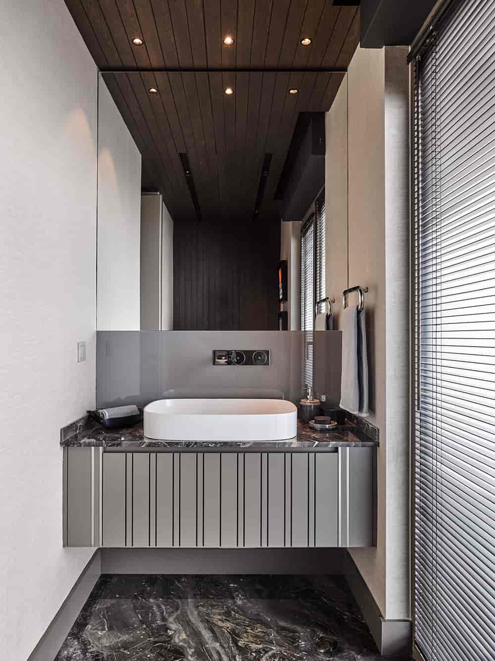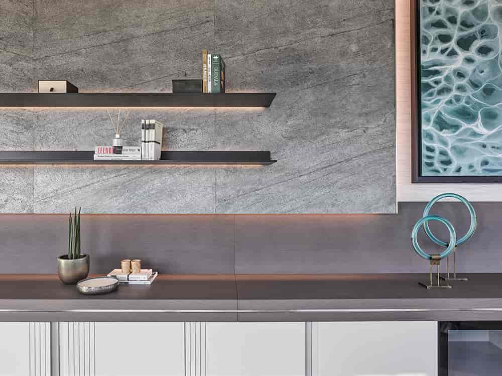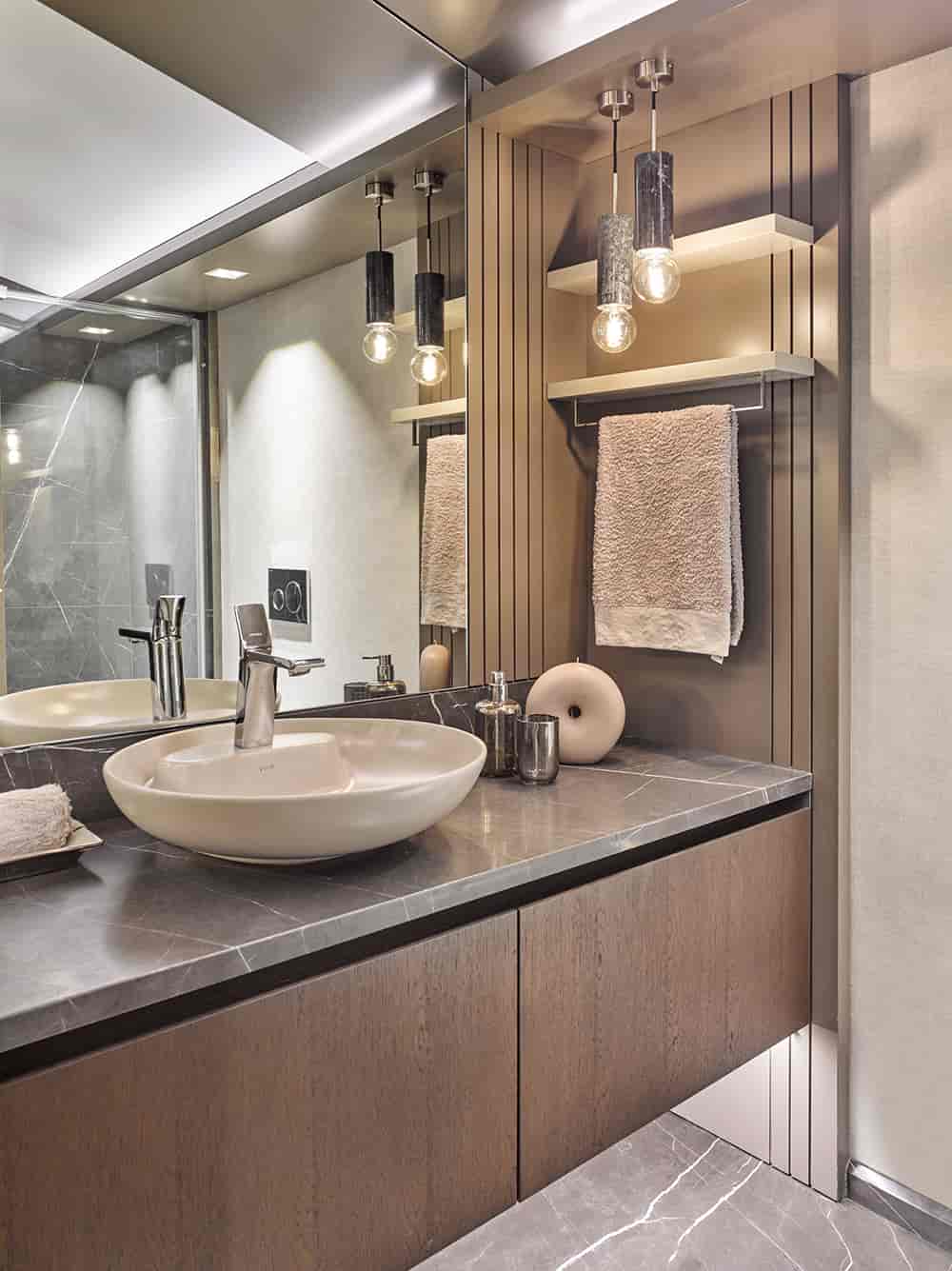 Ev sahiplerinin oldukça önem verdiği doğal taş seçimleri aynı zamanda konseptin çıkış noktası olmuş ve evin tasarımı konusunda ilham vermiştir. Ev sahipleri ile birlikte seçilen mermerlerin renk ve dokularından yola çıkarak onlarla uyumlu diğer malzeme seçimleri ve birleşim detayları oluşturulmuştur.