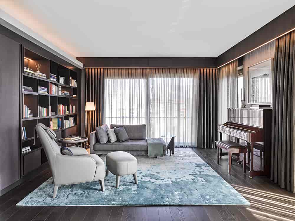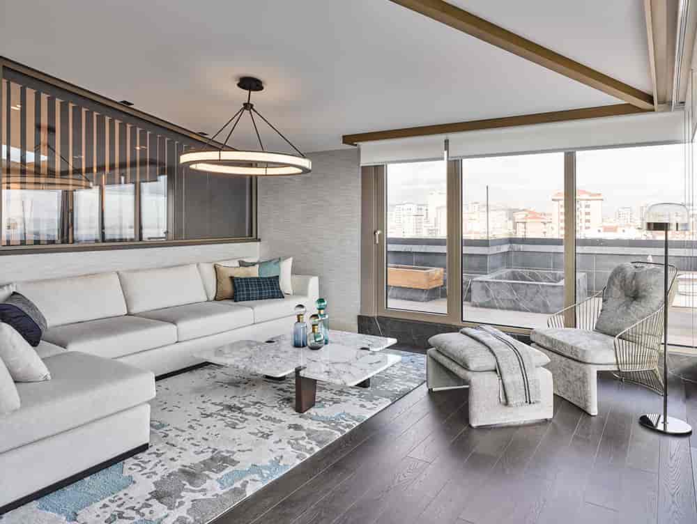 Erenköy’de bulunan daire, alt katı 250m2, üst katı 150 m2 olmak üzere iki dubleks dairenin birleştirilmesi ile oluşturulmuştur.