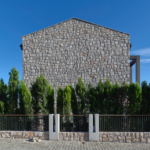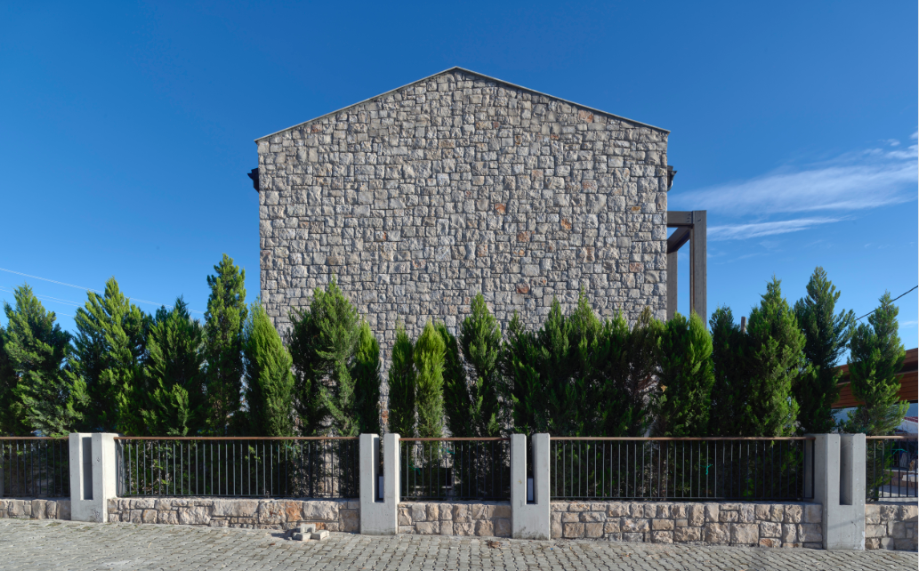 Proje iki beden duvarı arasında kurgulanmıştır. Karaburun taşından oluşturulmuş bu beden duvarları (kırma taş olarak kullanılarak) yerel olma durumunu destekleyerek yapının bağlamıyla olan ilişkisini kuvvetlendirmiştir.