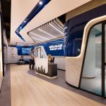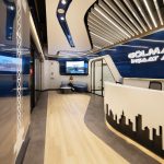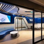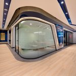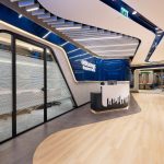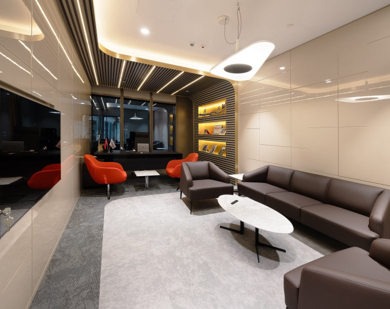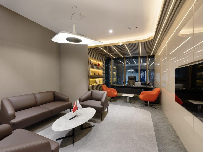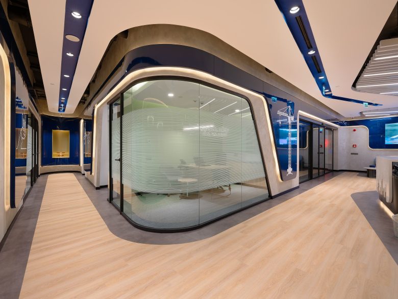 Girişten itibaren kullanıcıyı çevreleyen ve saran eğrisel akışkan formlar, modern ve çağdaş bir mimari üslupla şirketin yeni kimliğini yansıtmaktadır.