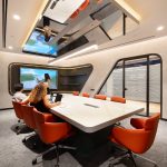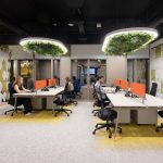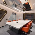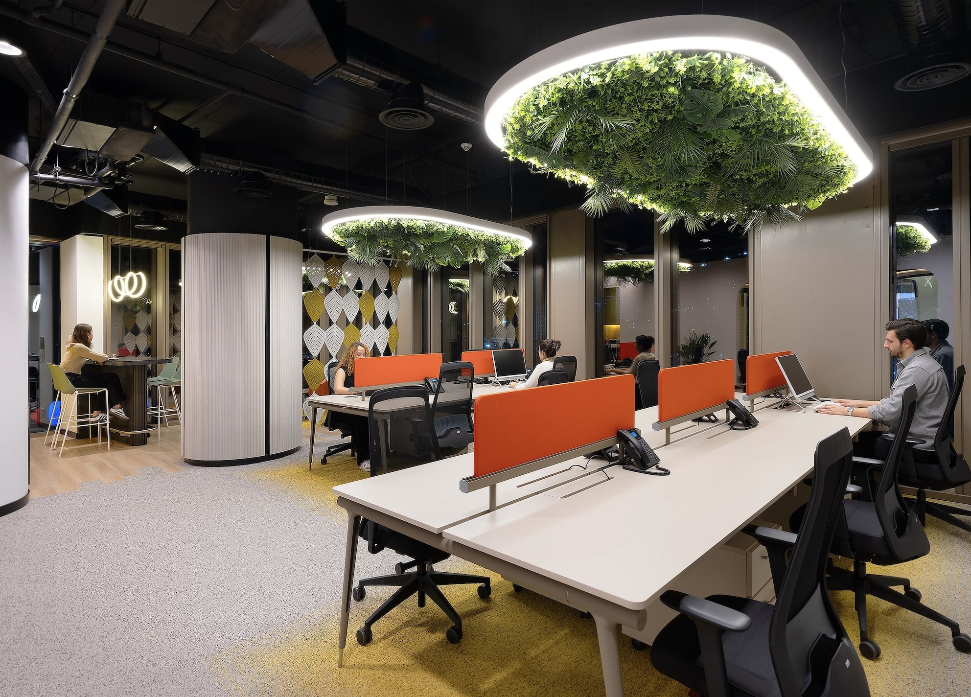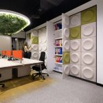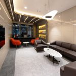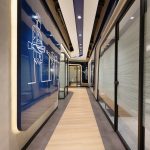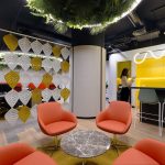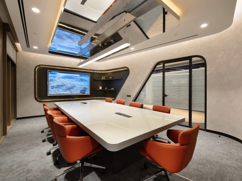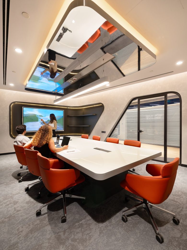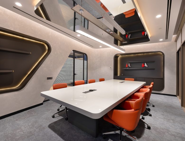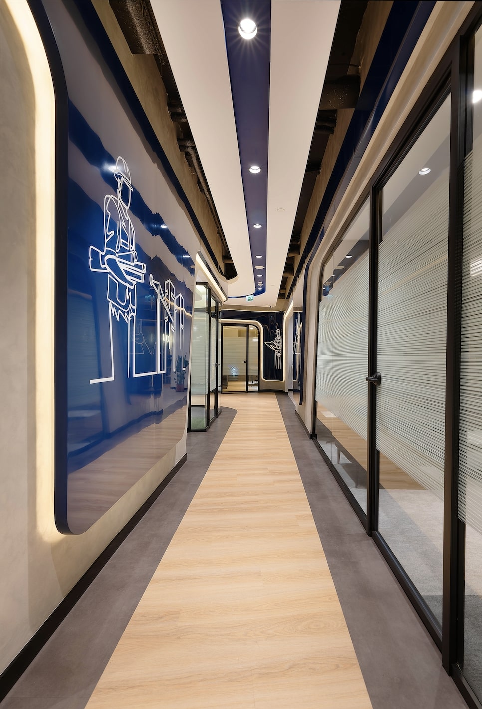Özetle, girişten itibaren ofisin tüm alanlarında kullanılan eğrisel çizgiler ve modern tasarım diliyle, pastel ve sıcak renklerin harmanlandığı; hem kullanıcılar hem de ziyaretçiler için etkileyici ve keyifli bir mekân yaratılması hedeflenmiştir.