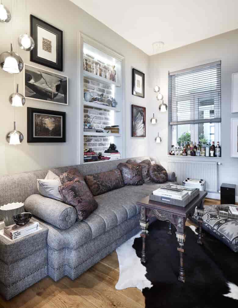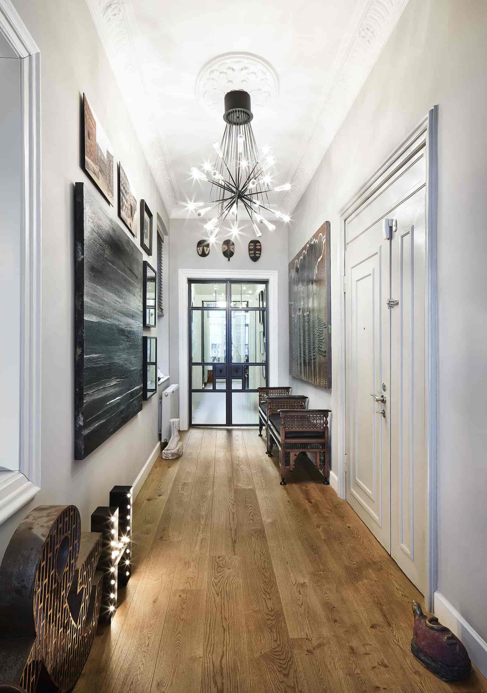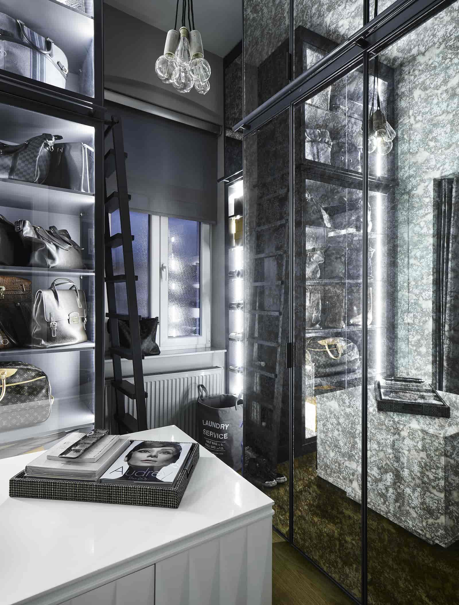 Yüksek tavanın avantajını kullanarak, mekanlar ya sallanan aydınlatmalar ya da obje karakterindeki aplikler ile aydınlatıldı. Özellikle salonda ayaklı ve gizli aydınlatmalar, dramatik bir ışığın hem ortamı hem eserleri ortaya çıkarmasını sağladı. Evin medya ve yatak odası bölümünde yer alan iki niş de kütüphane ve sergileme için, gizli aydınlatılarak vurgulandı.