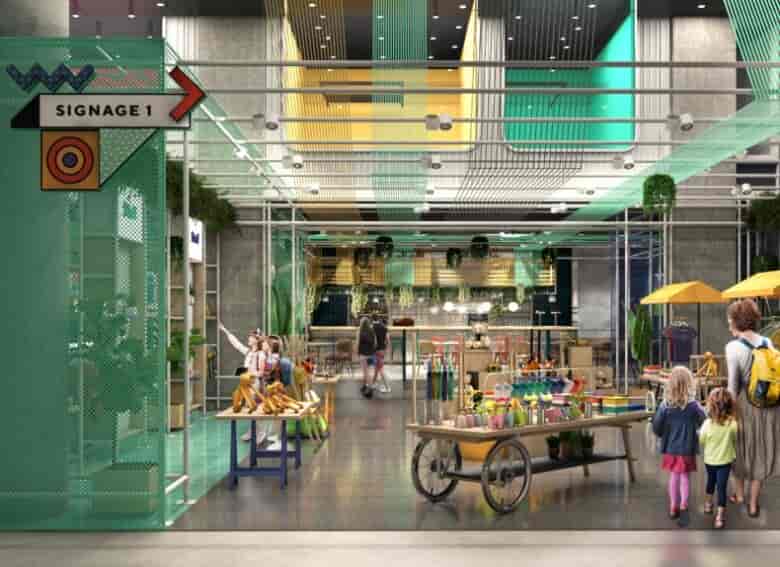 AVM içerisinden ve caddeden iki ayrı girişi bulunan Hupalupa'nın ortasında interaktif avlu adını verdiğimiz alan yer alıyor. Bu alanın iki tarafında da farklı işlevler barındıran mekanlar bulunuyor. Sol tarafta küçük yaş gruplarına hitap eden oyun alanları yer alırken, sağ tarafta gençler için konumlandırılan oyun alanları, cafeler ve alışveriş alanları bulunuyor. Marka dilinde güçlü bir şekilde yansıttığımız memphis style grafik öğeler, interaktif avluda yer alan bilet gişeleri ile birlikte bütün kiosk tasarımlarında üç boyutlu olarak kendini gösteriyor.