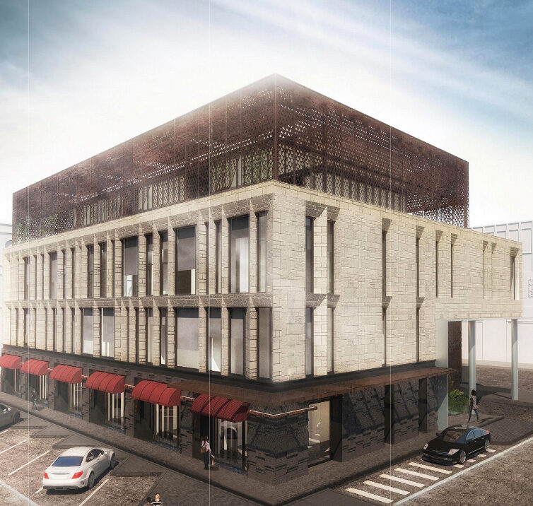 The project is a five-storey headquarter for a leading international company located on Jeddah, KSA. The building respects the architectural and historical references of the local area, as far as stone to glass ratio and alignments are concerned, yet does so without direct historical reference. The building has great functional flexibility and uses a thin stone suspended skin as both a shading device and a strong image-maker for its corporate owner, while satisfying the two-third stone and one third glass zoning requirements. The floor plates are freed of structural constraints while all the building services are pushed into the two blind ends, since the building combines different functions in it; while the ground floor has welcomes both retail spaces and Office entrance and the first floor embraces the firm’s working Office area.
