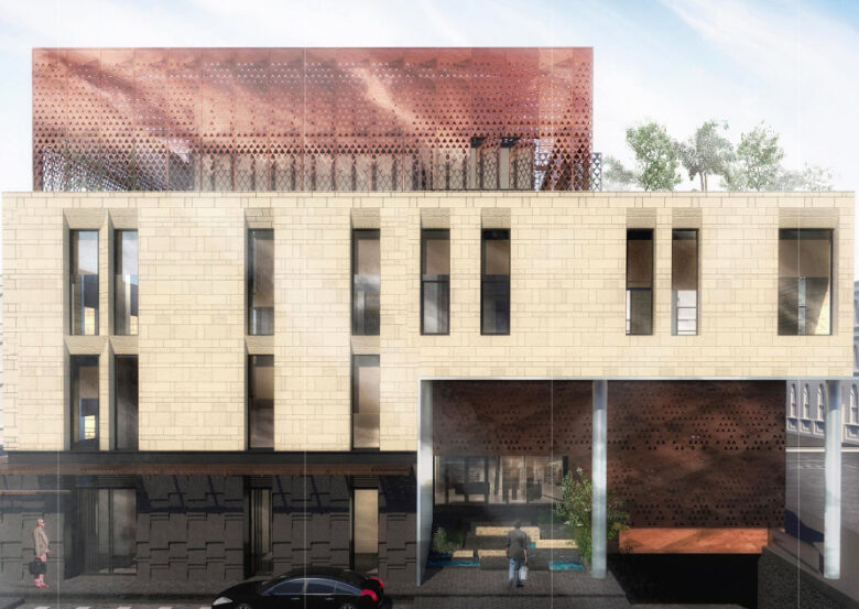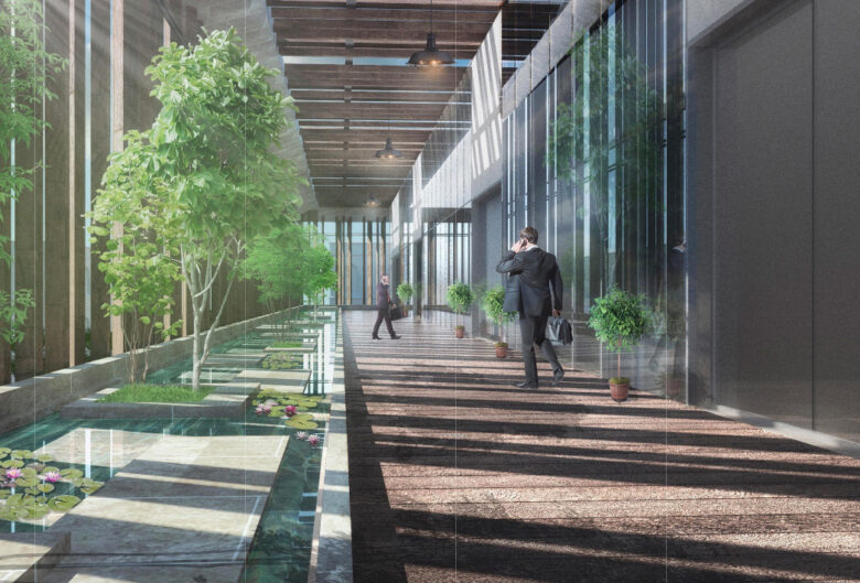 All the executive offices and the spaces that are linked to the executive offices have been settled on the top floor. While the stone cladding facade system has been used as a common usage from all above the building but at the top floor; main box -which contains all the executive Office in it- is hidden behind the perforated zinc panels. This brownish panels are also hiding the perfectly isolated green garden which is connecting the all executive offices to eachother. Jeddah Office Building will have been finalised in 3^rd quarter of 2019.