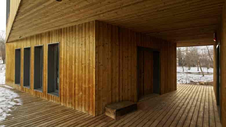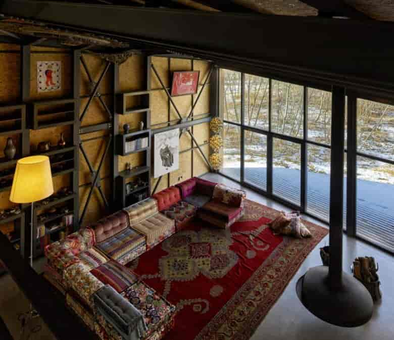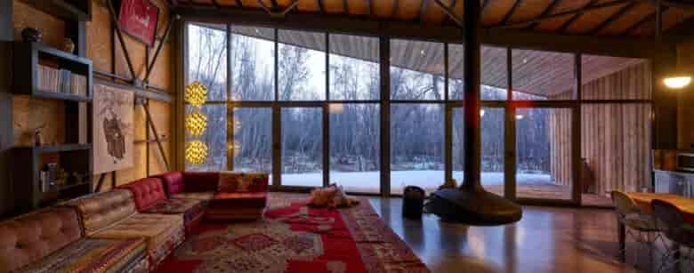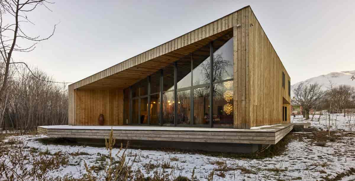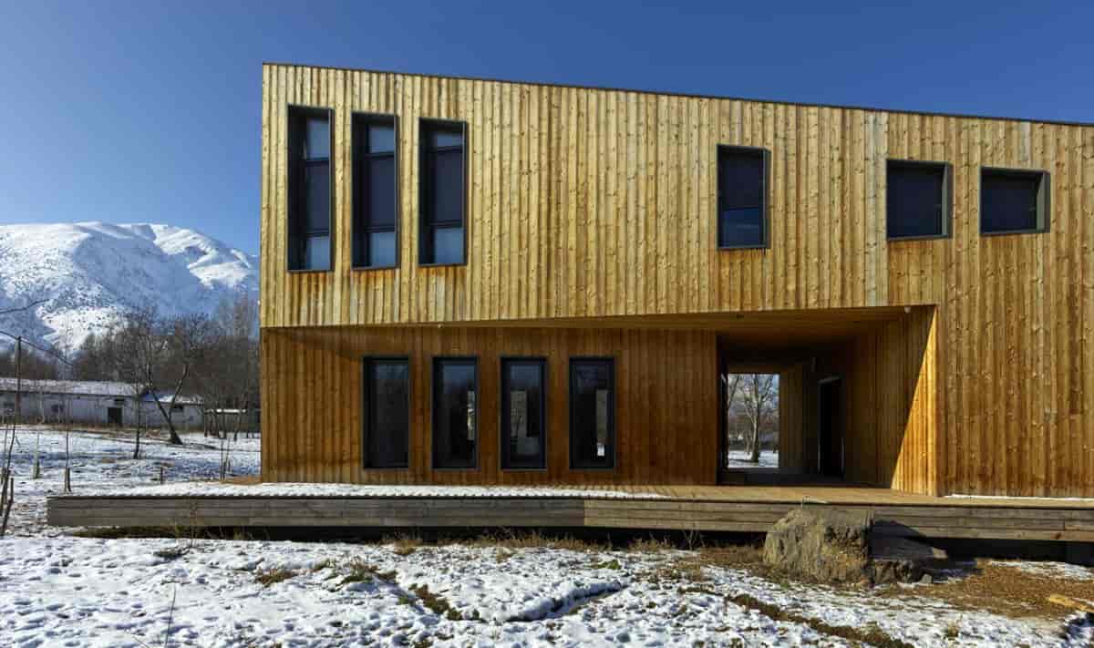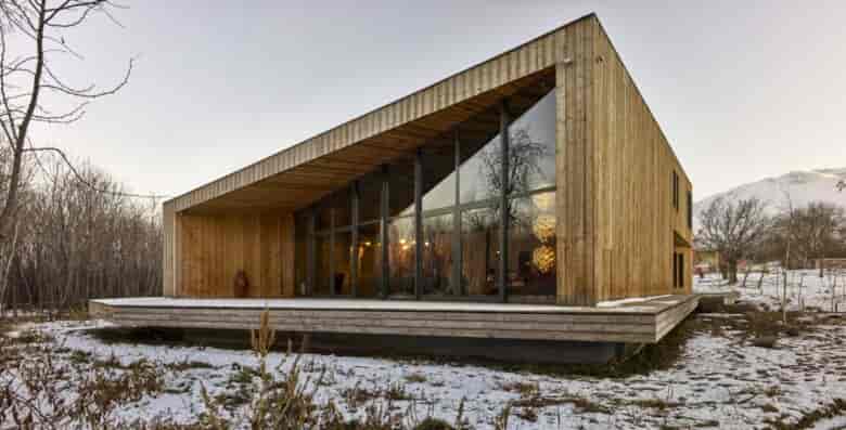 KA Evi uluslararası sanat çalışmaları yapan, sıklıkla sergiler açan bir film yönetmenine ait. Bu işlerine ilaveten çiftçilik ve hayvancılık ile ilgilenmeye başlayınca ailesinden kendisine intikal etmiş arazilerden birinde bir ev yaptırtmaya karar verir. Evi hem çiftlik işleri ile ilgilendiği zaman kalabileceği bir konut hem de sanat ve film çalışmalarına konsantre olabileceği bir inziva noktası gibi düşünmektedir. Diğer taraftan bir proje için mekana ihtiyacı olan uluslararası sanatçılara dönemlik ev sahipliği yapacak bağımsız bir atölyeyi/ odayı da programa dahil eder. Sık ağaçlık içinde çevreden izole bu mekan özellikle gün batımında Munzır Dağlarının harika manzarasına hakim bir noktada bulunmaktadır. Azami mahremiyet evin planlamasında önemli koşullardan biri olmuştur. Özellikle dış mekan kullanımının ve evin iç mekanlarının yakın çevrede yaşayanlar tarafından algılanmaması istenmiştir. Arazi Erzincan’ın biraz dışında kaldığı için kolay inşaat yapmaya imkan vermemiş, bu sebeple bina taşıyıcı sistemi çelik ile tasarlanmış, Kocaeli’nde imal edilip yerinde monte edilmiştir. Tüm dış duvarlarda ve çatıda yine kuru imalat sistemleri kullanılarak inşaat kalitesini arttırmak hedeflenmiştir. Erzincan’ın 1939 ve 1992’de geçirdiği iki büyük deprem ve yaşadığı kayıplar hafızalarda hala canlı olduğu için, hem ev sakinleri hem de gelecek misafirler için psikolojik olarak sağlam bir noktada olma hissini yaratmak projenin ana fikirlerinden birini oluşturmuştur. Bu sebeple evin çelik strüktürünün iç mekanda da algılanması sağlanmış, bu durum atölye/ev hissinin oluşmasına da katkı sağlamıştır. Tüm mekanların birbiri ile görsel ilişkisinin olduğu bu atölye/ev tek bir kütle olmasına rağmen atölye kısmı dışarıdan ayrı girişli olarak planlanmıştır. Bu da atölye ve evin girişlerinin ortak bir saçak ile çözümünü gerektirmiştir. Kütlenin ortasında yaratılan bir boşluk eve farklı yönlerden yaklaşımda, farklı mekanlara girişi çözmüştür. Böylece Erzincan’ın soğuk ve karlı kış mevsiminde kapı önleri korunaklı kalmış, ev ise arazinin ortasında kalmasına rağmen arazinin derinliğini engellememiştir. Evin mobilyaları ev sahibi tarafından seçilmiş, aile yadigarı eski evden kalan tavan göbekleri tavana asılmış ve sanat koleksiyonundan bazı parçalarla iç mekan zenginleştirilmiştir.