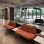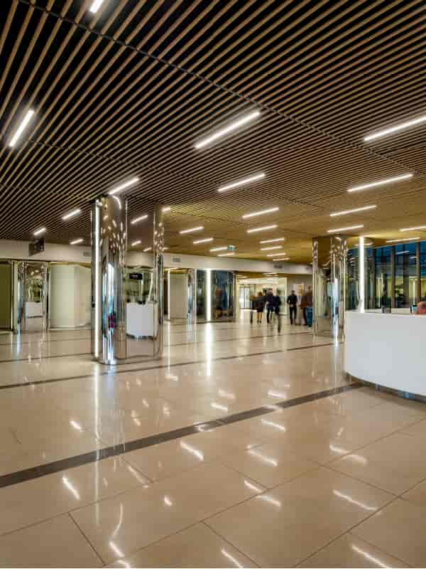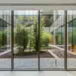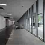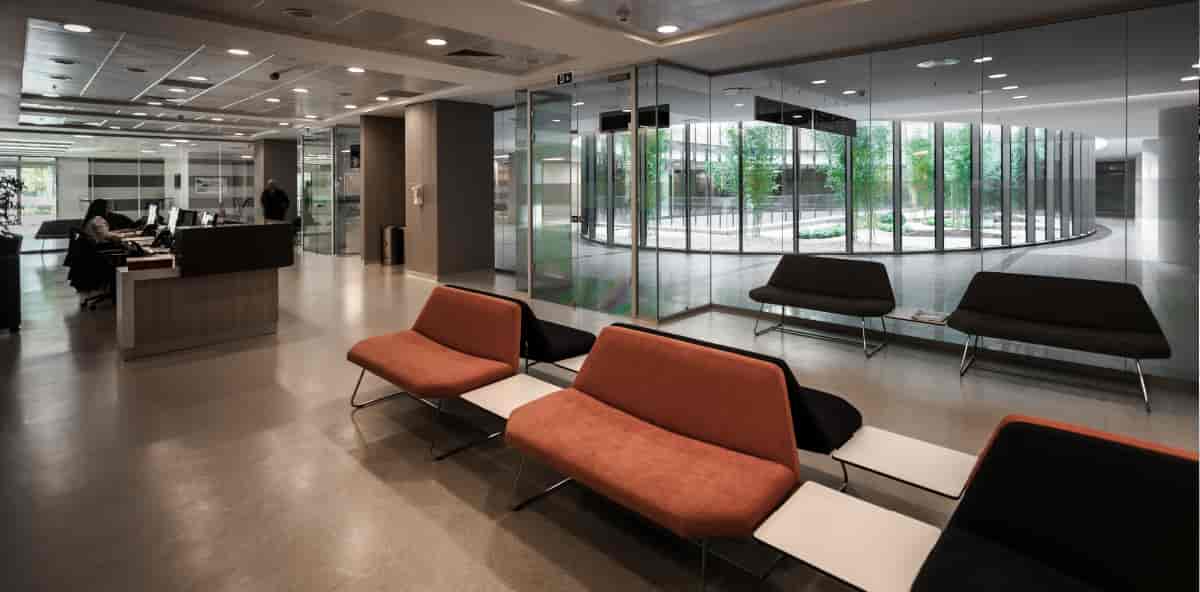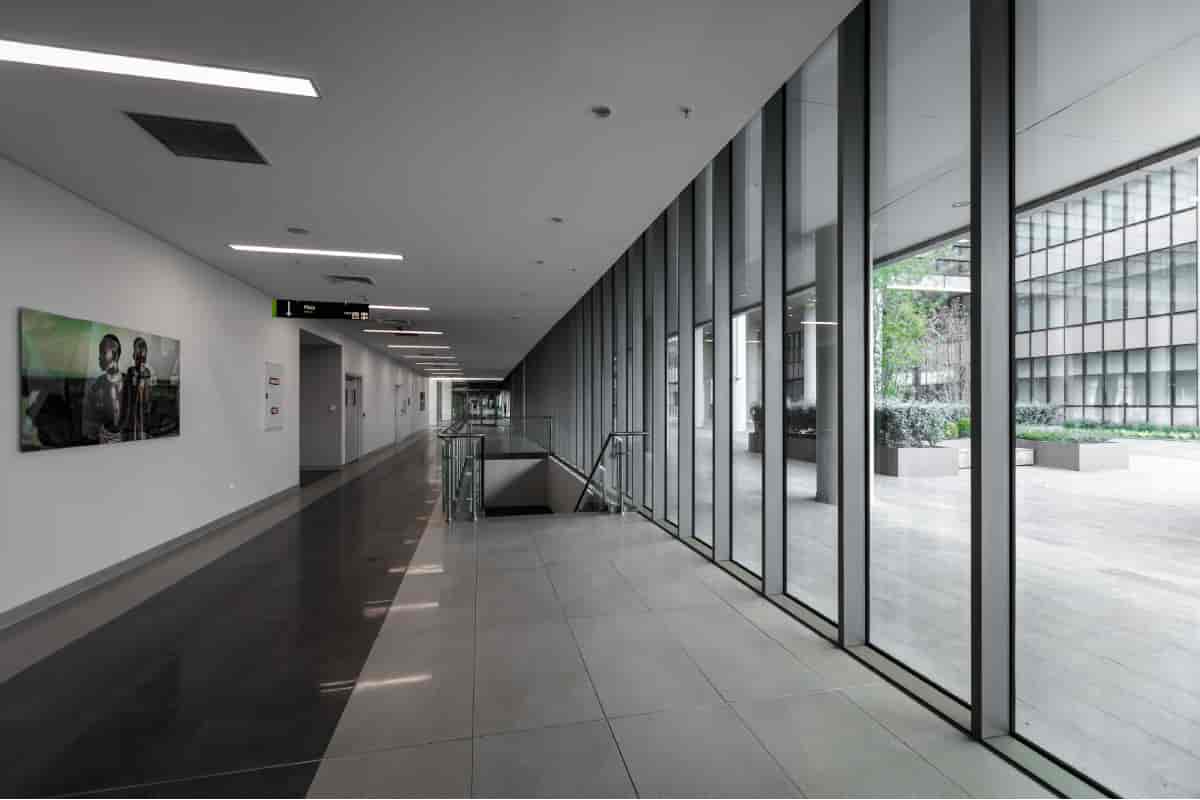Hastane ve poliklinik girişinin üstünde bulunan bloklar arasındaki teras sayesinde, tüm kompleksin zemin kotu ile kurduğu ilişki insan ölçeğine uygun hale getirilmiştir.