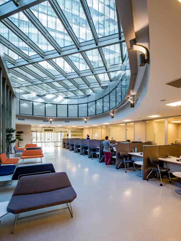 Binanın tamamında hastaların, öğrencilerin ve akademisyenlerin konfor koşulları gözetilmiş, dış cepheye yaslanmayan sınıflar, laboratuvarlar, hasta ve yoğun bakım odalarının yanı sıra, kafeterya, yemekhane, ofisler gibi destek birimlerinin de ya bloklar ortasındaki ortak terasa ya da açılan çukur bahçelerle görsel ilişki kurması sağlanmıştır. Bu nedenle özellikle zemin kattaki tüm mekanlar doğal ışıktan faydalanabilmiştir.