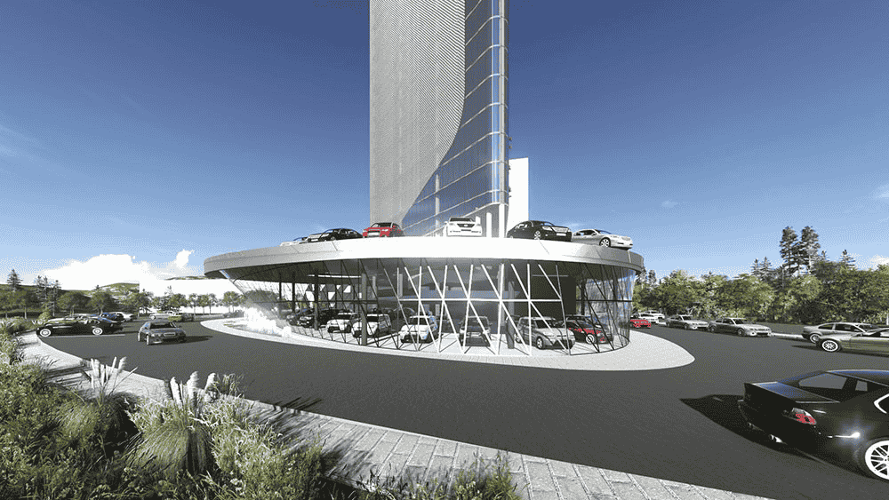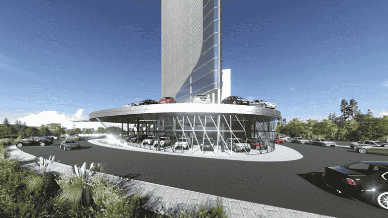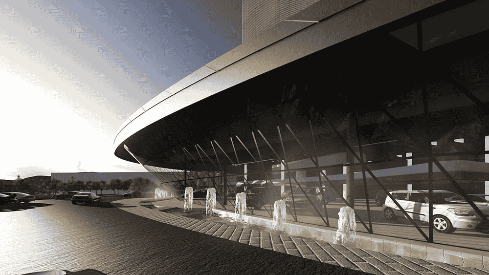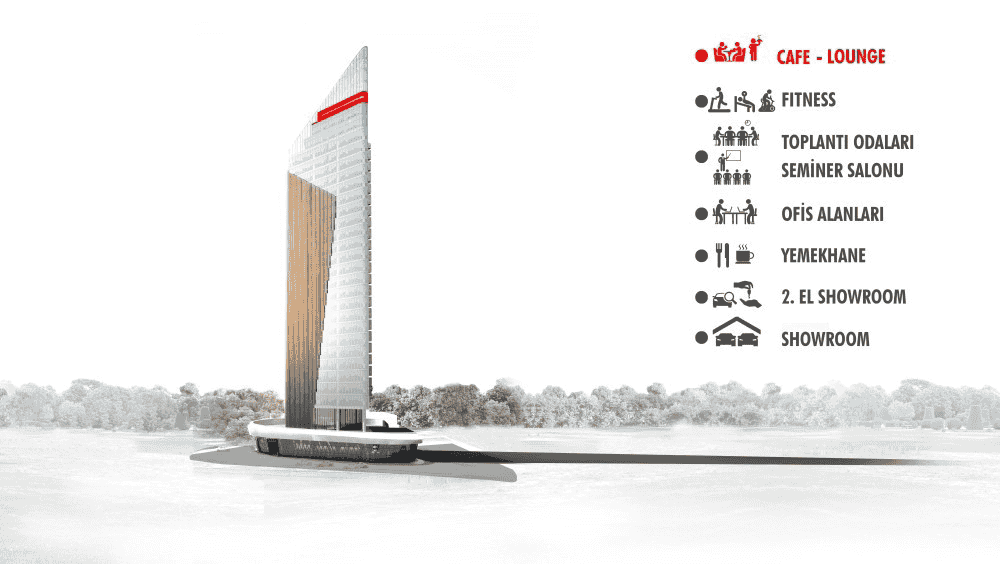 Gaziantep Fevzi Çakmak Bulvarı üzerinde, yeni adliye sarayı yakınında yer alan proje, araç galerisi (auto showroom) ve ofis fonksiyonlarının bir arada çözümlenmesi olarak özetlenebilir. Galeri anlayışı, 0.00 kotu ve +8.00 kotunu birbirine bağlayan, kütleyi saran helezonik rampanın şekil vermesi ile ortaya çıkmıştır. Kütleler arasındaki fonksiyon ayrımını fiziksel olarak da hissettirmek adına, ofis kütlesi kolonlar üzerinde yükseltilmiştir. Doğal hava ilişkisi kurulmasına yönelik olarak ofis bloğunda bulunan kat bahçeleri, şehir istikameti olan doğu cephesinde konumlandırılmıştır. Kütlenin bitişi ise, adliye binasına bakacak şekilde teraslandırılmış katlardan oluşturulmuştur.
