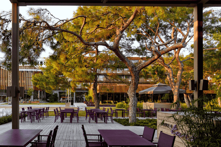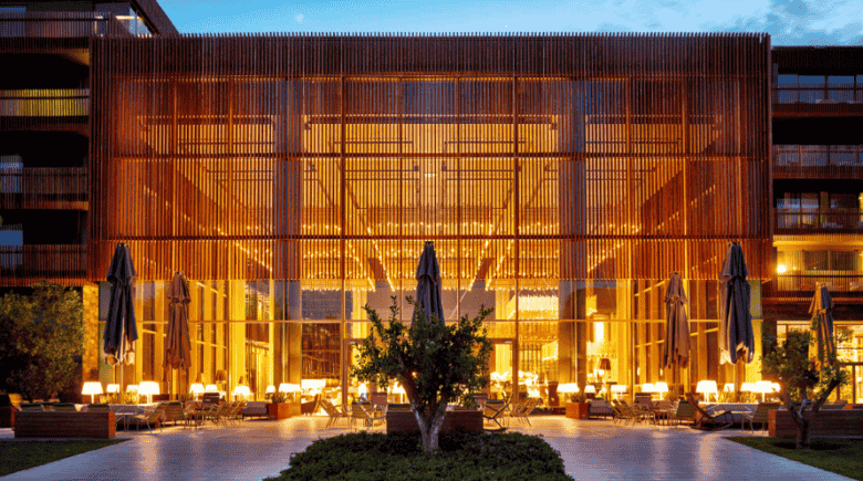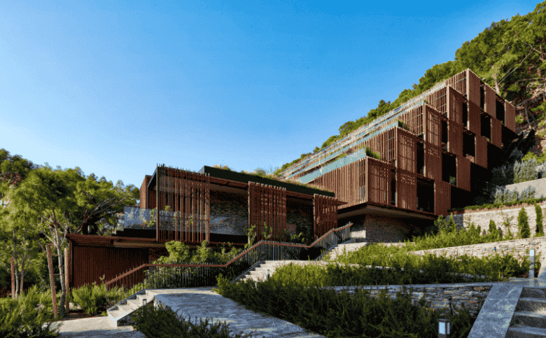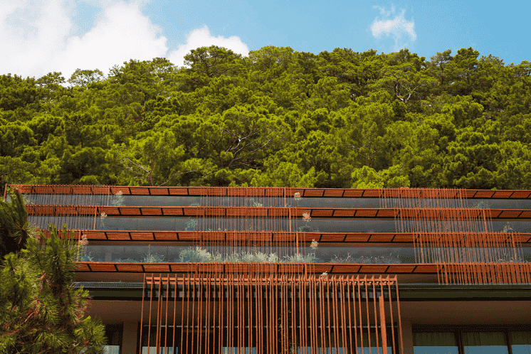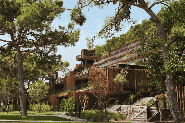 Ana bina kütlesi , restoran , spa, alışveriş birimleri , lobi gibi yoğun programlı işlevleri barındırmaktadır. Ana bina kütlesinin yapı karakterini belirleyen temel yapı elemanı, hem güneş kırıcı hem de korkuluk görevi gören ahşap elemanlar. Tül gibi yapıyı çepeçevre saran ahşap elemanlar yoğun bitki örtüsüyle yeni bir ilişki tanımlamak üzere düşünüldü..