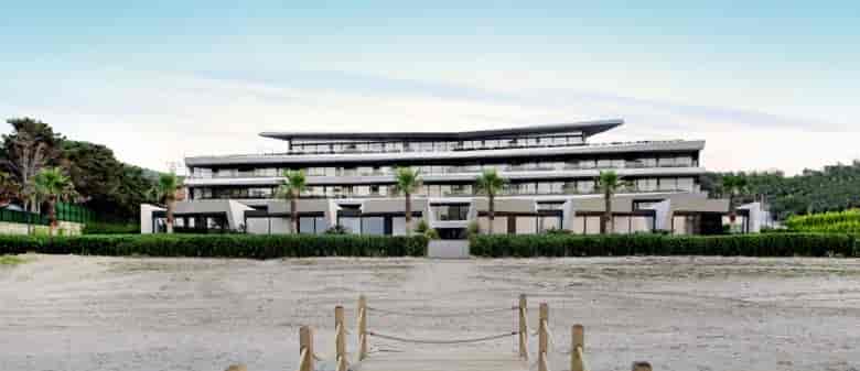 Proje denize sıfır bir konumda olmasının yanında kuzeyden gelen rüzgar dönemleri için korunaklı iç bir avlu oluşturulmuştur. Bu avlu on ve arkadaki ünitelerin birbirleriyle ortak buluşma ve dağılma noktasını oluşturmaktadır. Bu alandan kapalı alandaki, giriş lobisi, sosyal merkez, restaurant, spa gibi birimlere geçilebildiği gibi acık alanda havuz ve termal havuz alanlarını barındırmaktadır.