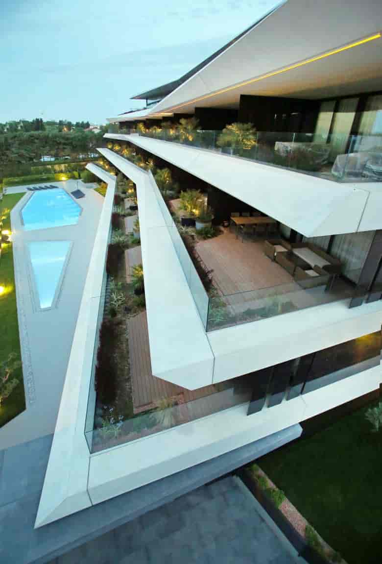Etkin güneş yönü (güney) projenin arkasında kalmaktadır. sıcak ve rüzgarlı iklim için bu faktörler belirleyici unsur olmuştur. Her Ünite için açık alan kullanımı için geniş bahçe-teras alanları oluşturulmuştur. Bu alanların gökyüzü ve ufukla buluşmasını istememiz, güneşin ortadaki avluya daha fazla gelmesini sağlamak için yapı her katta 2 mt güney yönünde geriye kaydırılmıştır. Bu kayma aynı zamanda güney yönünden gelen etkin güneş için avantajlı gölge alanı yaratması sağlanmıştır. Üniteler farklı hava durumlarına göre kullanılabilecek bir iç-dış mekan kurgusuna geçişliliğine sahiptir.