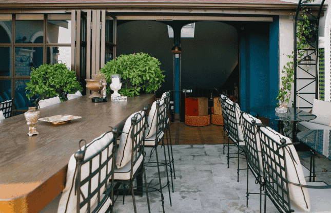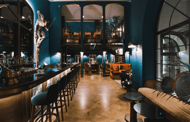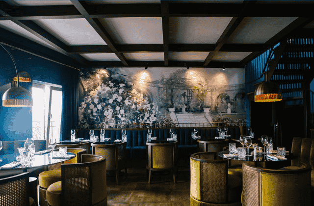 Mekan ve mobilyalar tasarlanırken otel konseptine uyumlu olarak Art Deco’dan ilham alınmış, “Gentleman’s Club” tan yola çıkarak tasarlanmıştır. Hem otel müşterilerinin kahvaltı salonu olarak kullanılan Lounge; bar, restoran, şömineli dinlenme bölümü, Beyoğluna ve Galatasaray Lisesine bakan bir teras ve dilendiği zaman kapatılarak toplantı salonu olarak kullanılan bir bölümden oluşmaktadır.