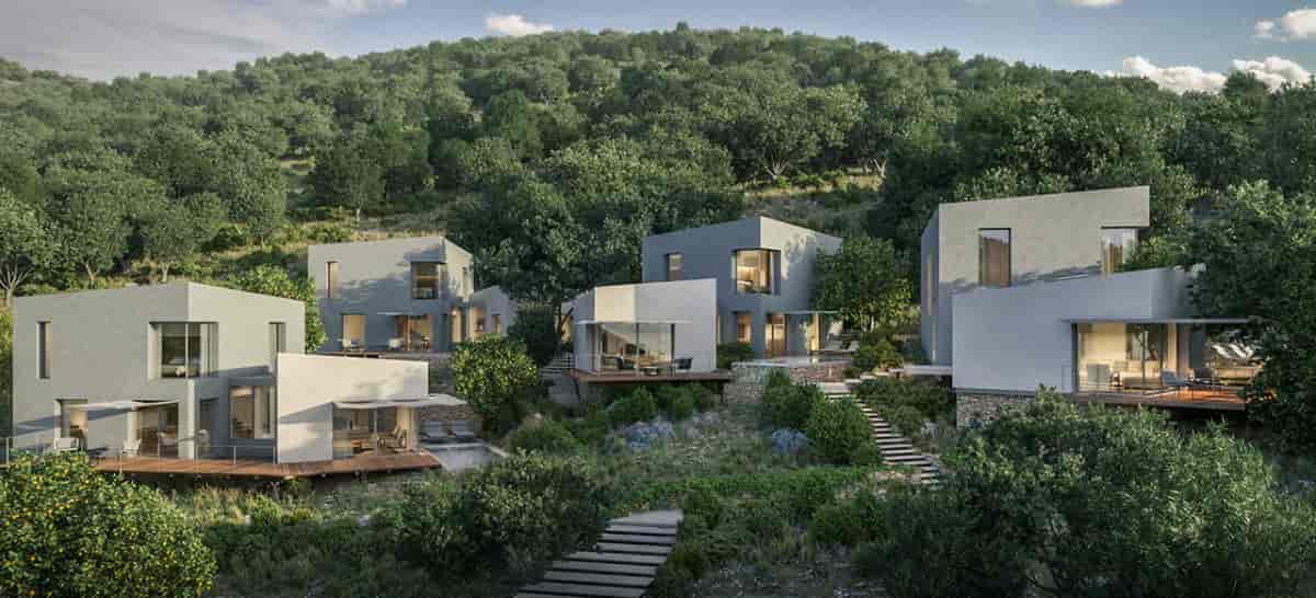 Her villa için gün içinde farklı saatlerde yaşanabilen çoklu teras alanları tasarlanmış, doğal havalandırmayı destekleyecek şekilde doğrama yerleşimleri ve skylight çözümleri geliştirilmiştir. Vaziyet planı yerleşimi var olan ağaç dokusunu korumaya çalışarak, her villanın konumunun diğerleri ve manzara ile olan ilişkisi değerlendirilerek belirlenmiştir. Organik dokular örnek alınarak hem ortak, hem tekil yaşamı destekleyen plan yapısı oluşturulmuştur.